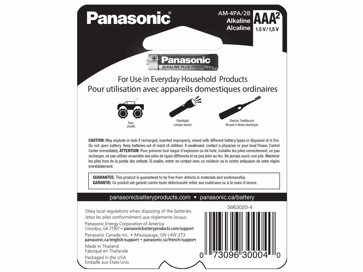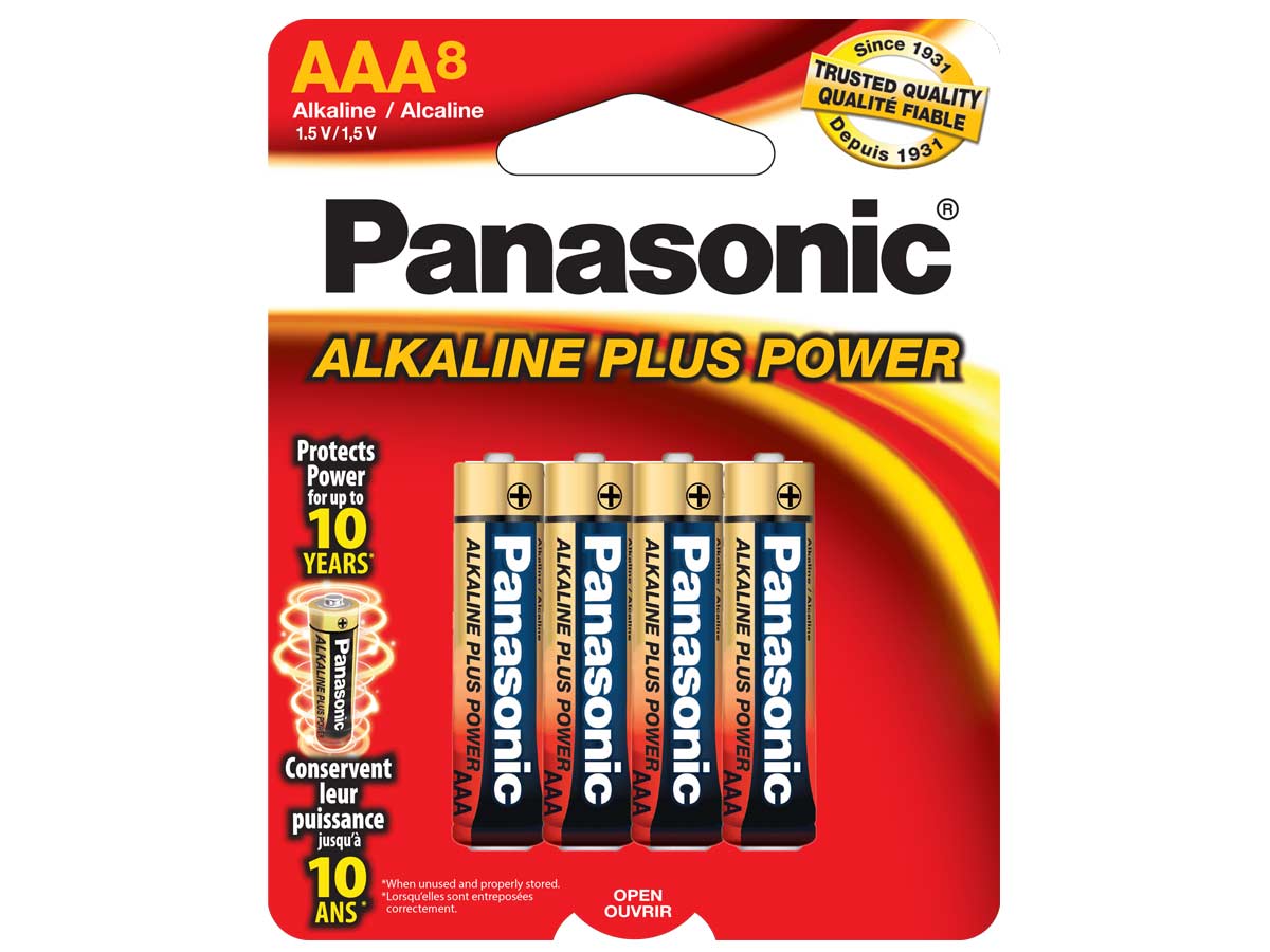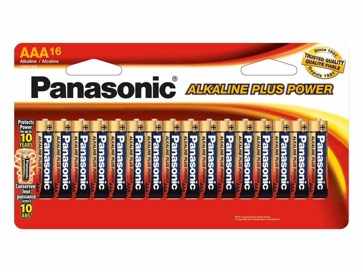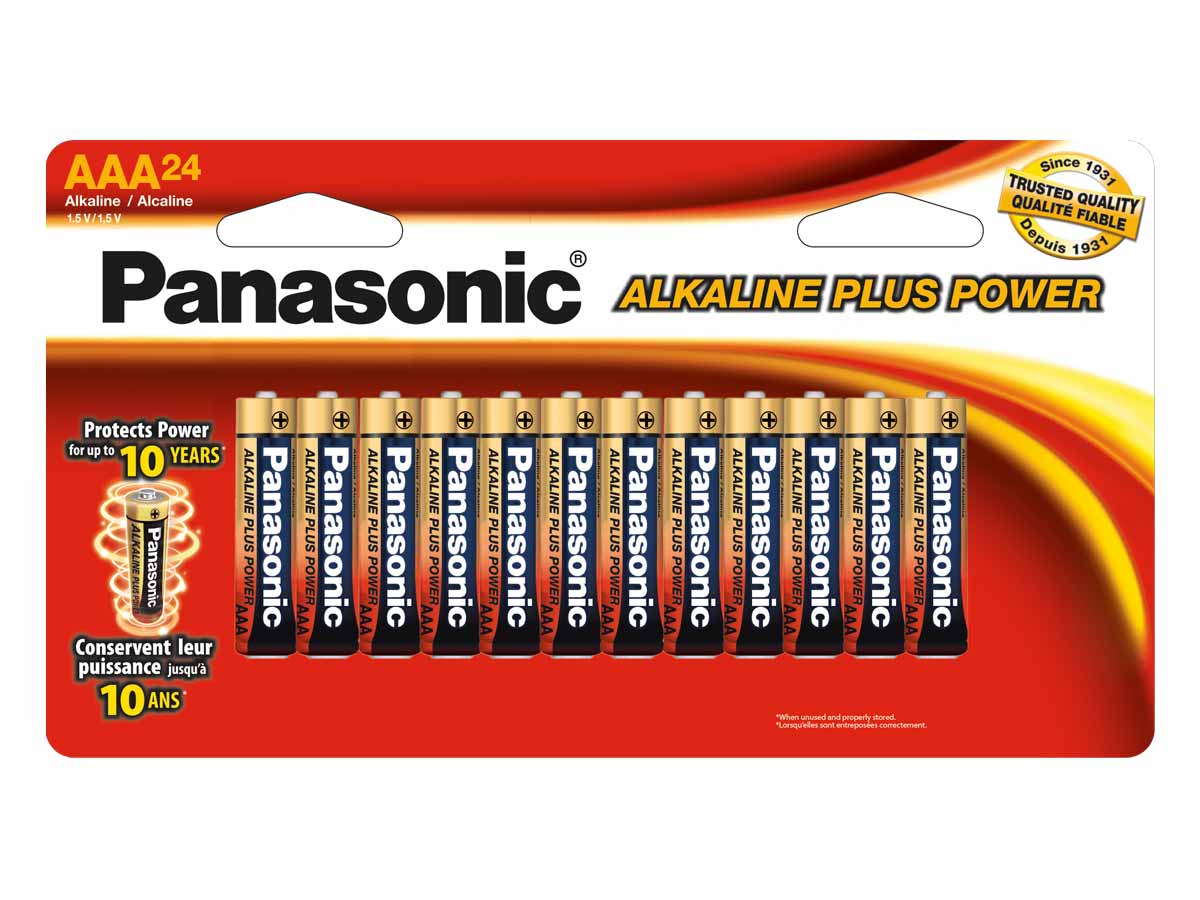 - Multiple pack sizes of Panasonic Alkaline Plus Power AAA batteries