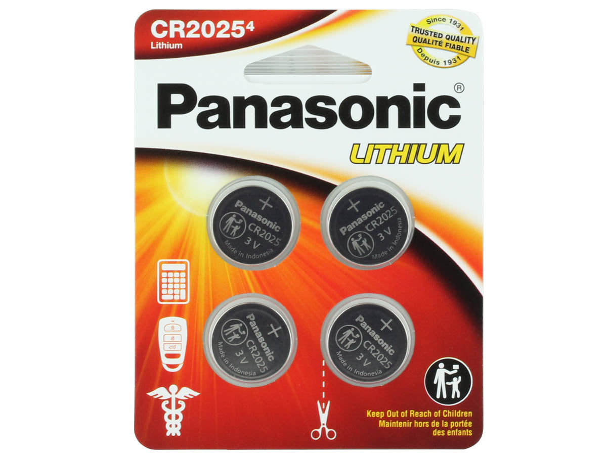 Panasonic CR2025 165mAh 3V Lithium (LiMnO2) Coin Cell Battery - 4 Piece Standard Size Carded Packaging