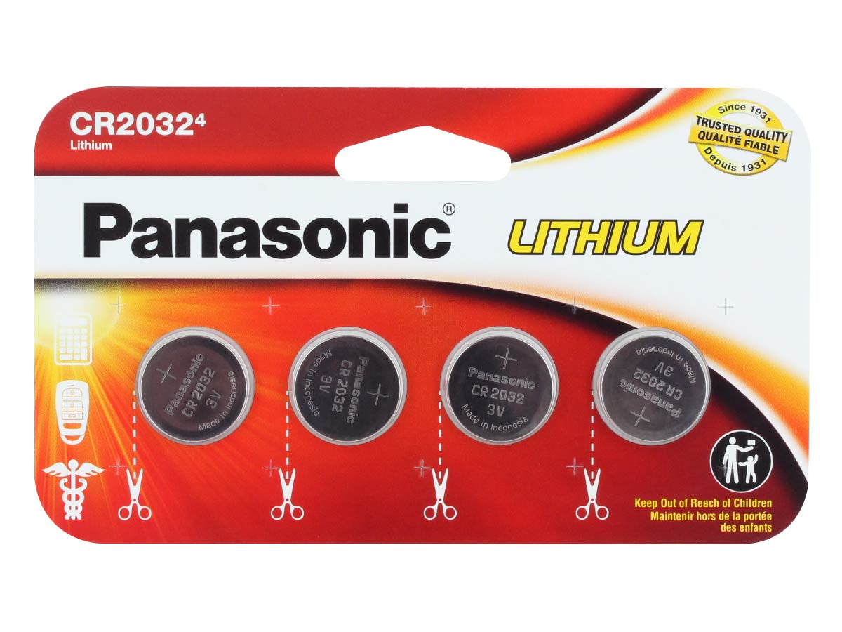 Panasonic CR2032 220mAh 3V Lithium (LiMnO2) Coin Cell Battery - 4 Piece Wide Size Carded Packaging