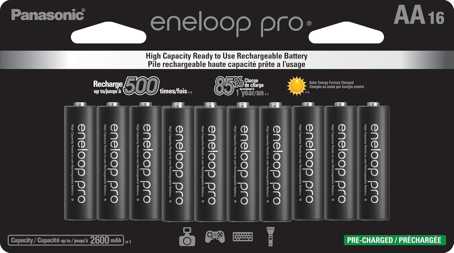 - Professional-grade rechargeable Eneloop Pro AA batteries