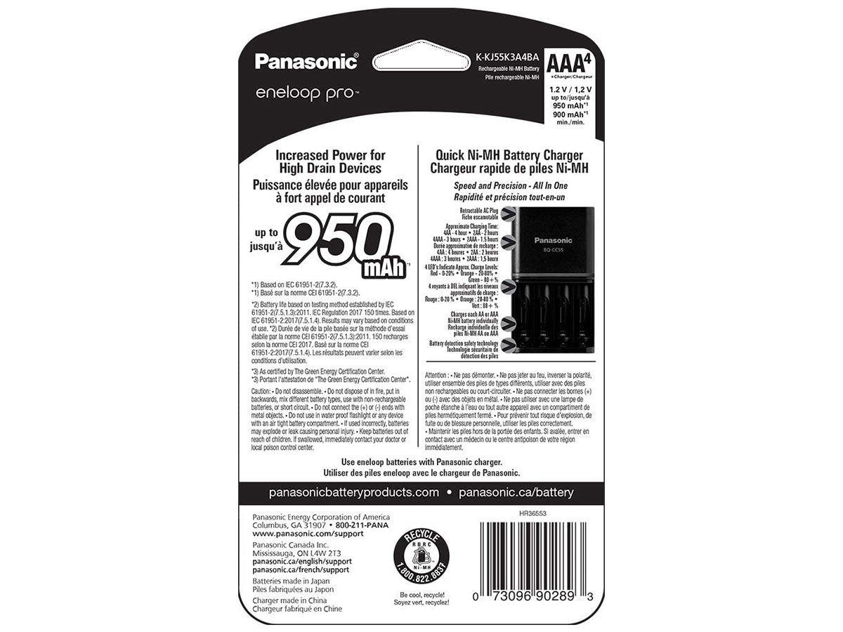 Panasonic Eneloop Pro 4-Position Quick Charger with 4 x 950mAh NiMH Low Self Discharge AAA Batteries (K-KJ55K3A4BA)