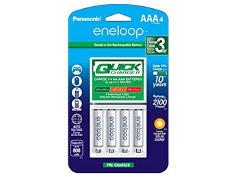 The Panasonic 4-Position Quick Charger is a rapid charging unit for both AA and AAA NiMH batteries. This charger has four open positions for either size battery and charges via standard AC power. This quick charger comes with Panasonic's renowned Eneloop AAA batteries, the low self-discharge cells that will keep your favorite electronics powered up longer.