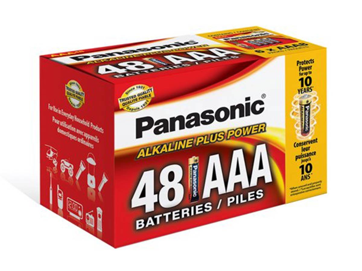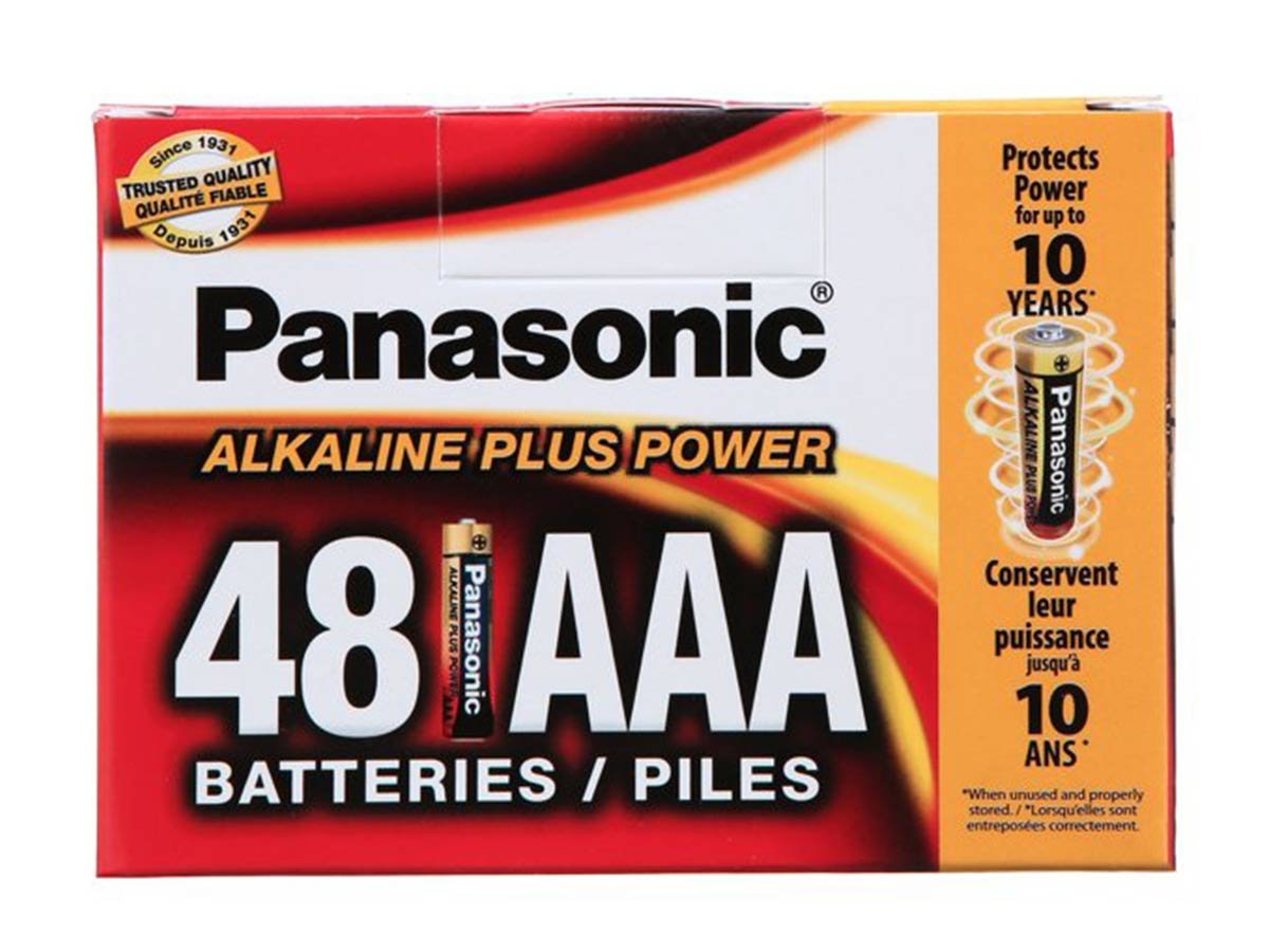 Panasonic Alkaline Plus Power AAA batteries now come in a pack of 48, to ensure that all of your favorite household devices stay powered for long. With 1.5 volts of power alongside premium alkaline chemistry, these AAA batteries best support security systems, alarms, sensors, and much more!