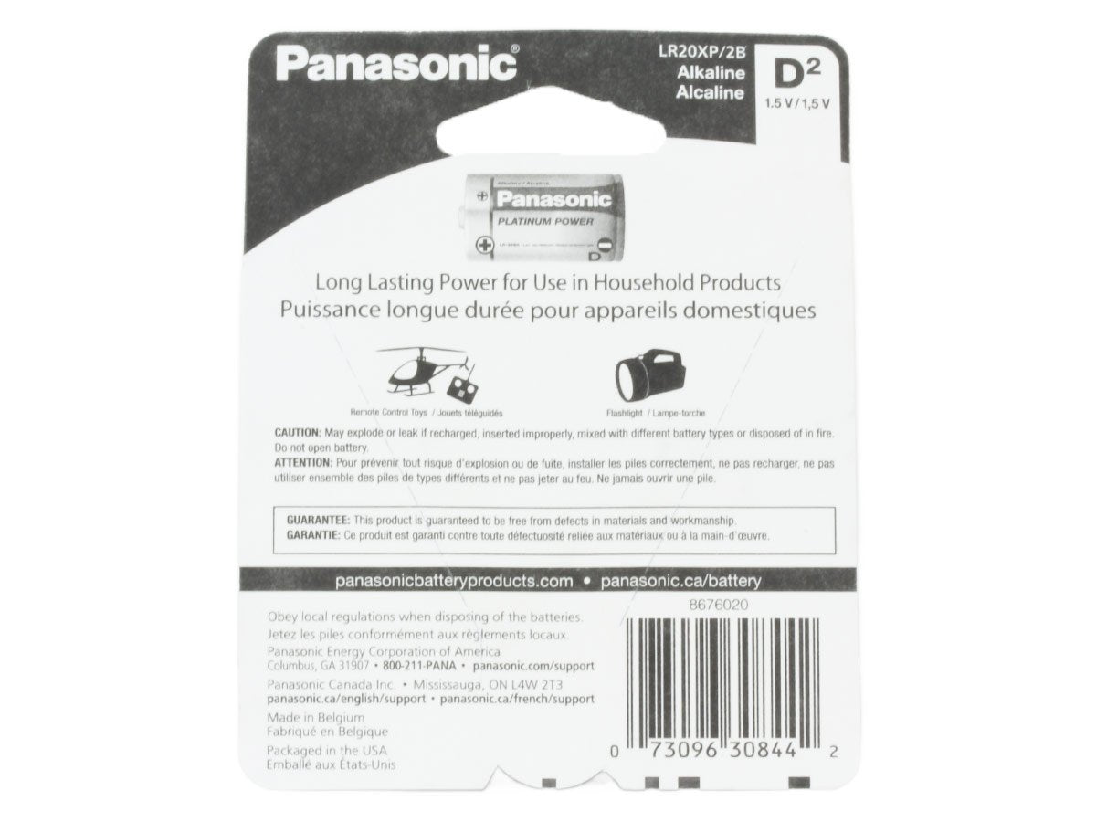 Panasonic Platinum Power LR20XP-2B D-cell 1.5V Alkaline Button Top Batteries - 2-Pack Retail Card