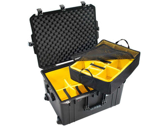 What makes the Pelican Air 1637 different from the others within Pelican's collection? This protective case is taller and deeper than the popular 1620 model, yet is still an impressive six pounds lighter! This gives you the ability to protect and carry more equipment without breaking a sweat. While lighter in design, the Pelican Air 1637 was still created with transport in mind. The 27 x 21 x 15-inch container is equipped with two quiet rolling wheels and a retractable trolley handle for easy maneuverability. You also have a choice of configurations - choose the empty model for storing larger, more durable items, or the Pick-n-Pluck™ foam for uniquely-sized equipment. Users also have the option of purchasing the Pelican Air 1637 with padded dividers to accommodate smaller, more delicate supplies, such as camera lenses and accessories. Please note that these protective cases are sold individually. The Pelican Air 1637 protector case is the perfect storage container for cameramen, outdoor enthusiasts, and search-and-rescue teams.