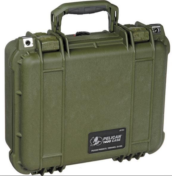 Pelican 1400 Small Watertight Case with Foam - Black, Orange, Yellow, Tan, Green, or Silver