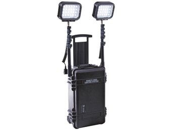 Unbelievably bright and incredibly user-friendly, the Pelican 9460 Remote Area Lighting System is the ideal tool to keep your job site active in the darkest conditions. Featuring a pair of 10-LED lamp heads that each produce up to 6000 Lumens for a total of 12,000 Lumens of stunning white light, this tool will make any lightless space clearly visible and ready for work. Each lamp head can rotate 360° and is attached to an easily adjustable mast to provide endless lighting angles to fit the needs of your work site. The powerful light source is powered by a potent Sealed Lead Acid (SLA) rechargeable battery pack that can not only power the lamps for up to 24 hours on a single charge, but can even charge your own devices using the convenient 12V DC power output located on the side of the case. The 9460 Lighting System uses an Intelligent Control System that allows its user to choose the light intensity and desired runtime from either its LCD display on its body or even remotely using the handy Pelican™ RALS App. Brilliantly bright and incredibly versatile, this lighting system is a must for any job site!
