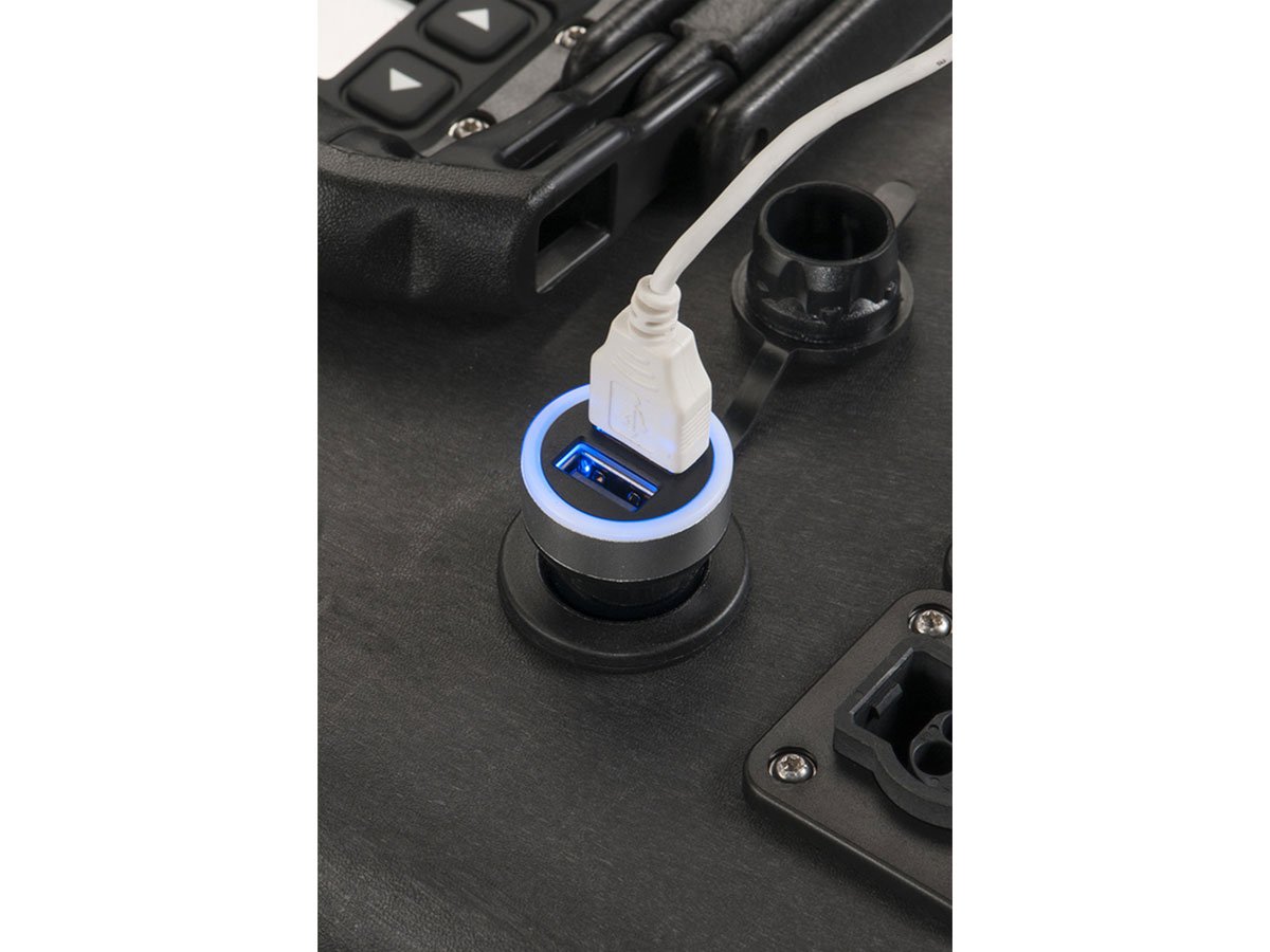 - » Equipped with a 12 volt power port and two USB ports to charge other essential devices