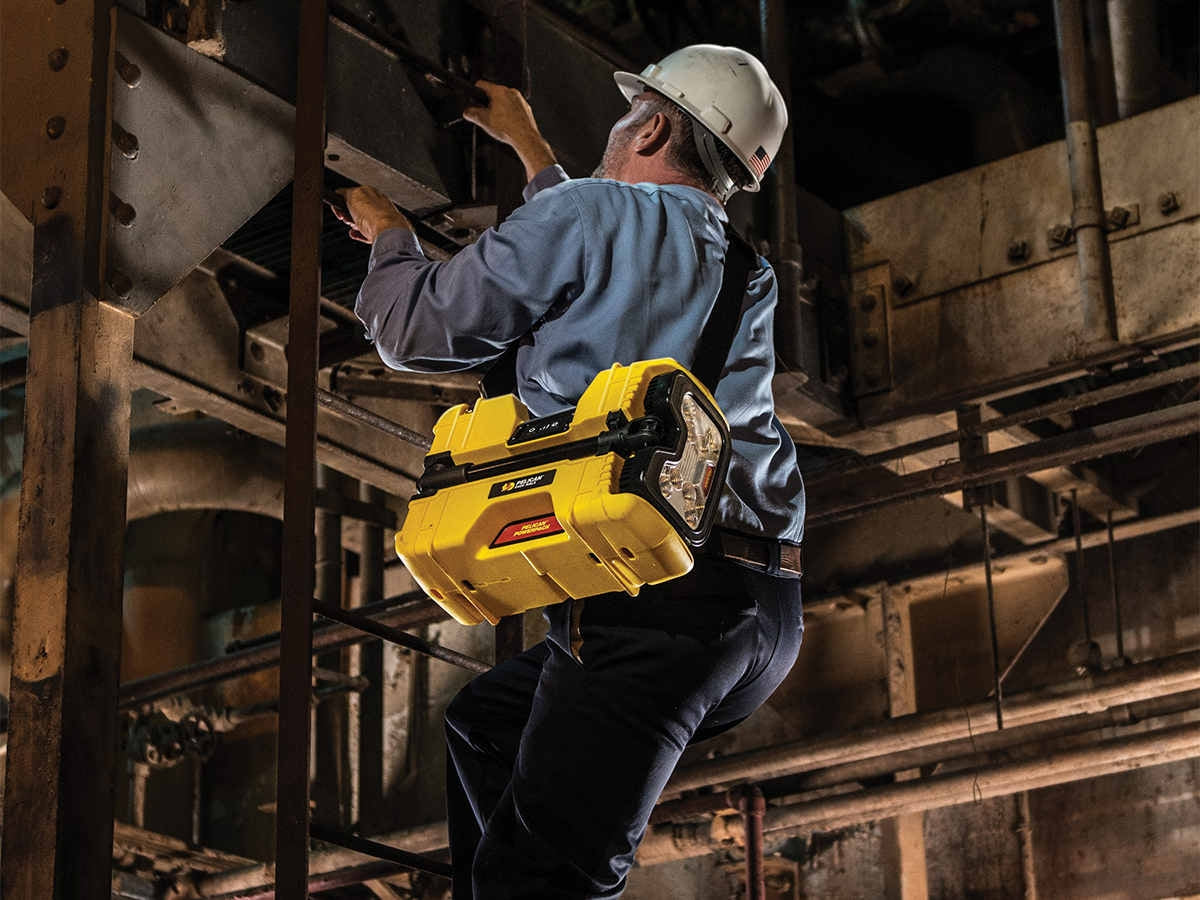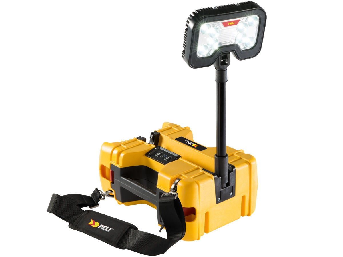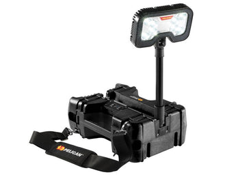 The Pelican 9480 Remote Area Lighting System is a compact floodlight perfect for anyone with an ever-changing work site. The portable area light weighs just over 27 pounds and comes with a handy shoulder strap, making it easy to carry with you wherever the job needs to be done! The light comes with a 2-foot retractable neck that comes with multiple deployment positions and can rotate 340°, allowing you to choose the lighting angle that best fits your needs. The 9480's 8-LED lamp head can emit up to 4000 Lumens of light in a broad 125° beam, fully illuminating your entire work site. The area light is powered by a powerful SLA (Sealed Lead Acid) powerpack, which can be quickly swapped out for a fresh pack when it's out of charge so you won't need to skip a beat at your job. The battery packs remaining charge can be continuously monitored using the LED power indicator located on the side of the lighting system.