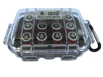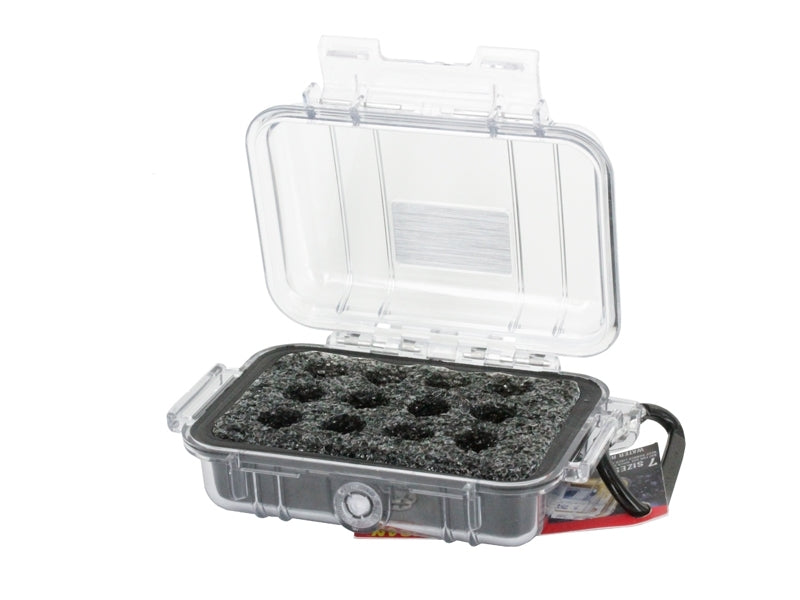 The Pelican 1010 Micro Case is a durable, waterproof carrying case ideal for transporting precious valuables safe from weather or impact damage. The case is made out of extremely tough plastic and features an easy open latch, an automatic pressure purge valve and includes a handy carabiner to attach to luggage or clothing. Included in this combo kit are a box of 12 Titanium CR123A batteries along with a pre-cut foam insert designed to fit 12 CR123As. This combo kit is a perfect companion for flashlight users on camping trips, hunting or boating trips.