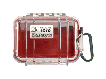 Pelican 1010 Watertight Case Clear / Red & 12 Titanium CR123A's With Pre-Cut Foam Insert
