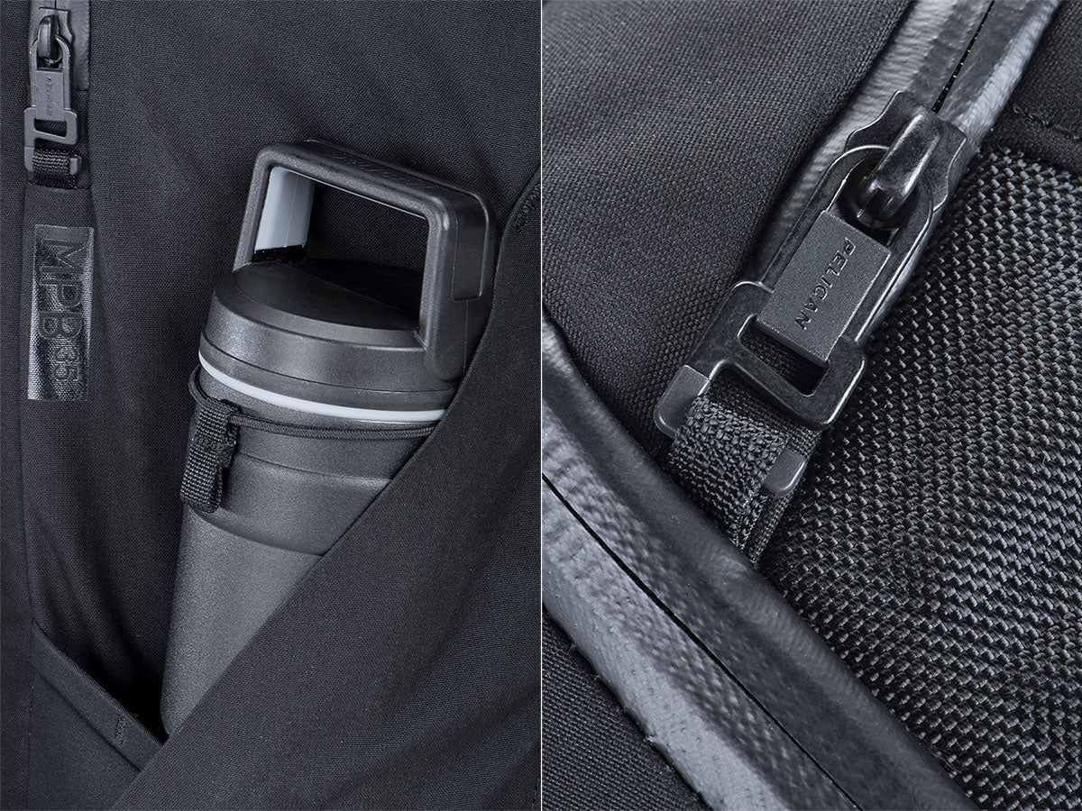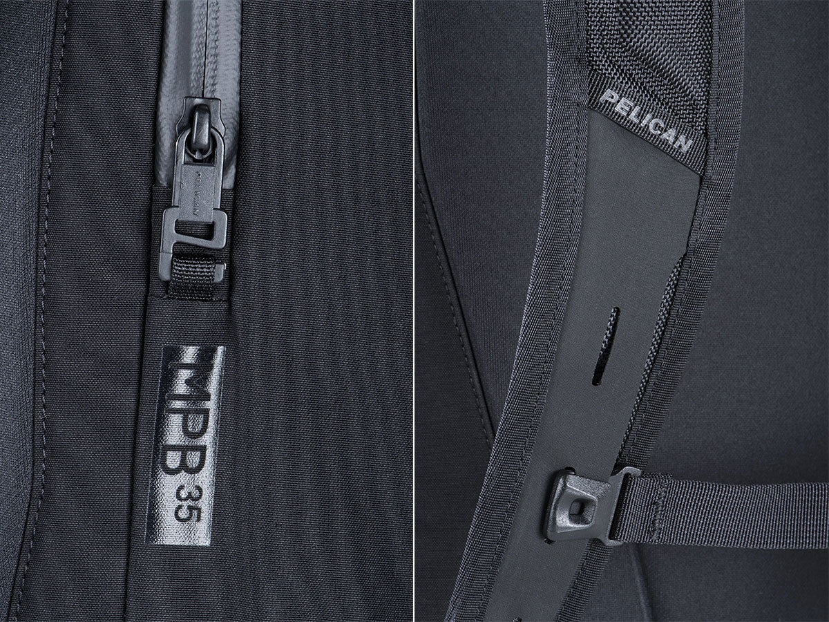 The Pelican MPB35 35L backpack is perfect for travel and for other urban adventures. This lightweight day pack is large enough to hold all of your gear, yet small enough to wear comfortably all day long. The Pelican MPB35 features a main storage compartment with smaller pockets and dividers to keep your hear organized. There is also a separate section for storing a laptop or a tablet. This padded section keeps your computer protected yet easily accessible while out and about. For added security, the laptop pocket has zippers with a loop-and-lock design to prevent others from accessing your expensive equipment. Once the zippers are shut, simply loop the hooks through the bag's hoops to prevent the zippers from moving out of place and from accidentally opening.