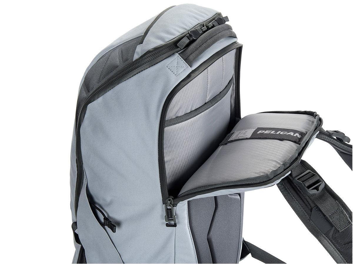 The Pelican 35L backpack also includes side pockets with attachment loops for securely carrying a water bottle or another item you may reach for frequently or want to store separately. The open pockets make these items easily accessible while the attachment loops prevent them from falling out of the pack. In addition to the tremendous amounts of storage space and organization, the Pelican MPB35 is also comfortable. This lightweight day pack is equipped with compression-molded shoulder straps and back panel to increase your comfort level. In addition to making the bag more comfortable, the extra padding also keeps your gear better protected from drops. This 35L backpack provides good ergonomic support as it includes an adjustable sternum strap to help evenly distribute the pack's weight. The Pelican MPB35 pack is a lightweight yet durable solution for carrying your gear on an adventure. If you are looking for a day pack with a lot of pockets and a dedicated laptop compartment, this 35L travel backpack is the perfect choice.
