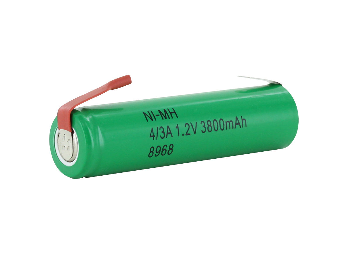 Industrial strength green NiMH rechargeable batteries: size 4/3A, 1.2V, 3800 mAh flat top with optional Tabs. Steady and high drain power output Can be recharged up to 1000 times. No memory effect, allowing Ni-MH batteries to be charged at anytime without the hassles of requiring full discharge before charging. Primarily used in battery packs.