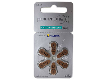 PowerOne Zinc-Air Mercury Free batteries are top of the line, setting the industry standard in hearing aid batteries. Frequently suggested by audiologists as PowerOne brand batteries stand out among more conventional brands in providing longer run times, and all around improved performance (higher audio power, greater clarity, and better frequency response). Each 312 battery outputs 1.45 Volts and is designed to power even the most demanding hearing assistance devices. PowerOne batteries are Manufactured in Germany - each cell is upheld to the strictest of safety guidelines.