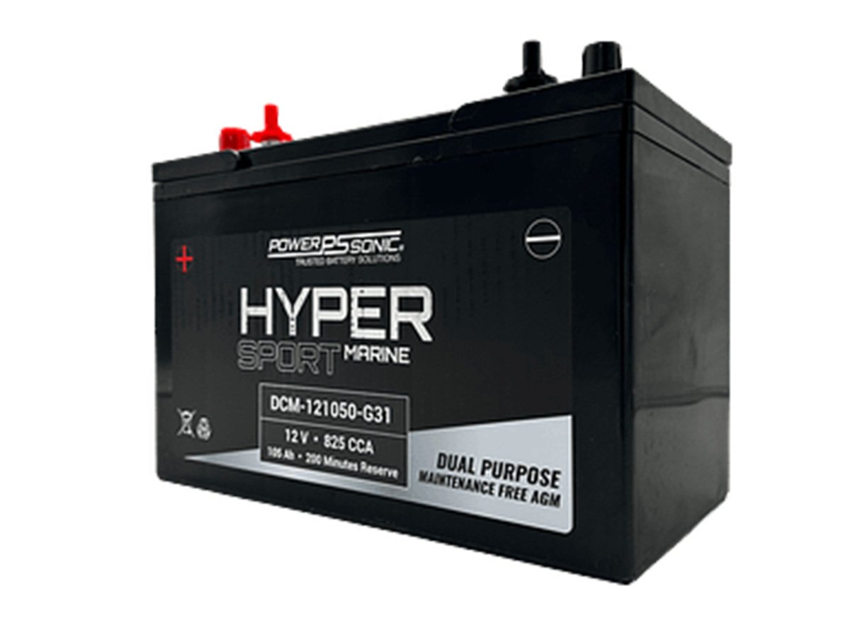 Power-Sonic DCM-121050-G31 AGM Deep Cycle 105Ah 12V 825CCA Rechargeable Sealed Lead Acid (SLA) Marine Battery - Group 31 - SAE Dual Terminal