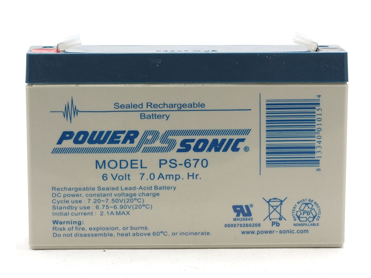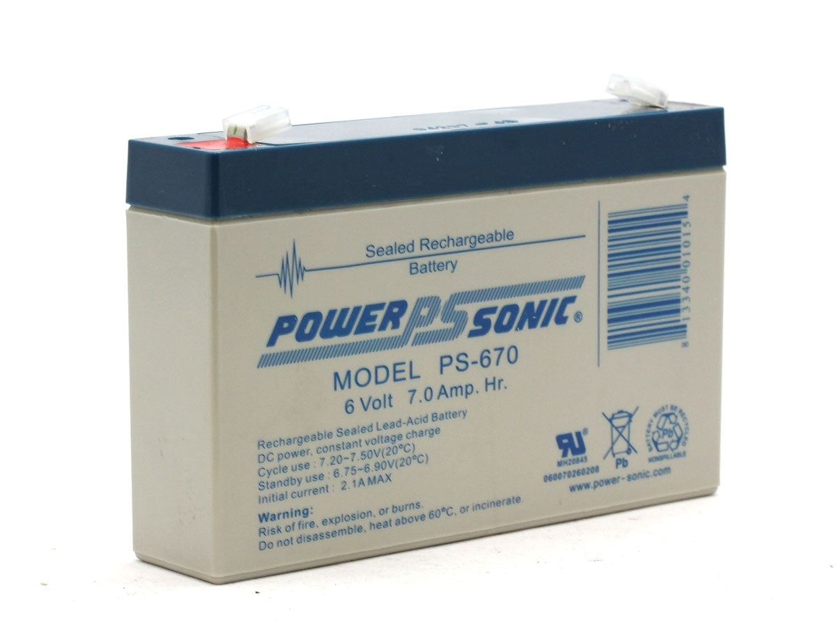 Power-Sonic AGM General Purpose PS-670 7Ah 6V Rechargeable Sealed Lead Acid (SLA) Battery - F1 Terminal