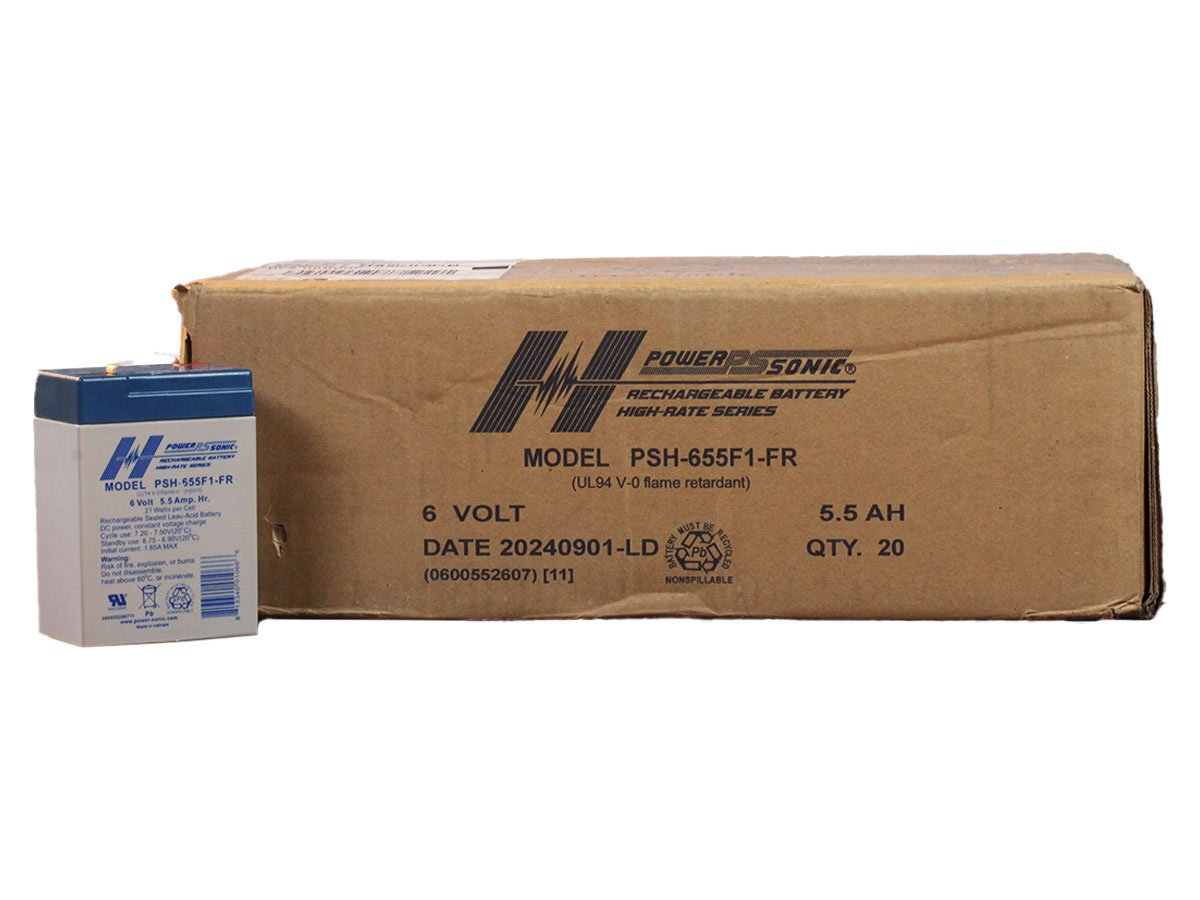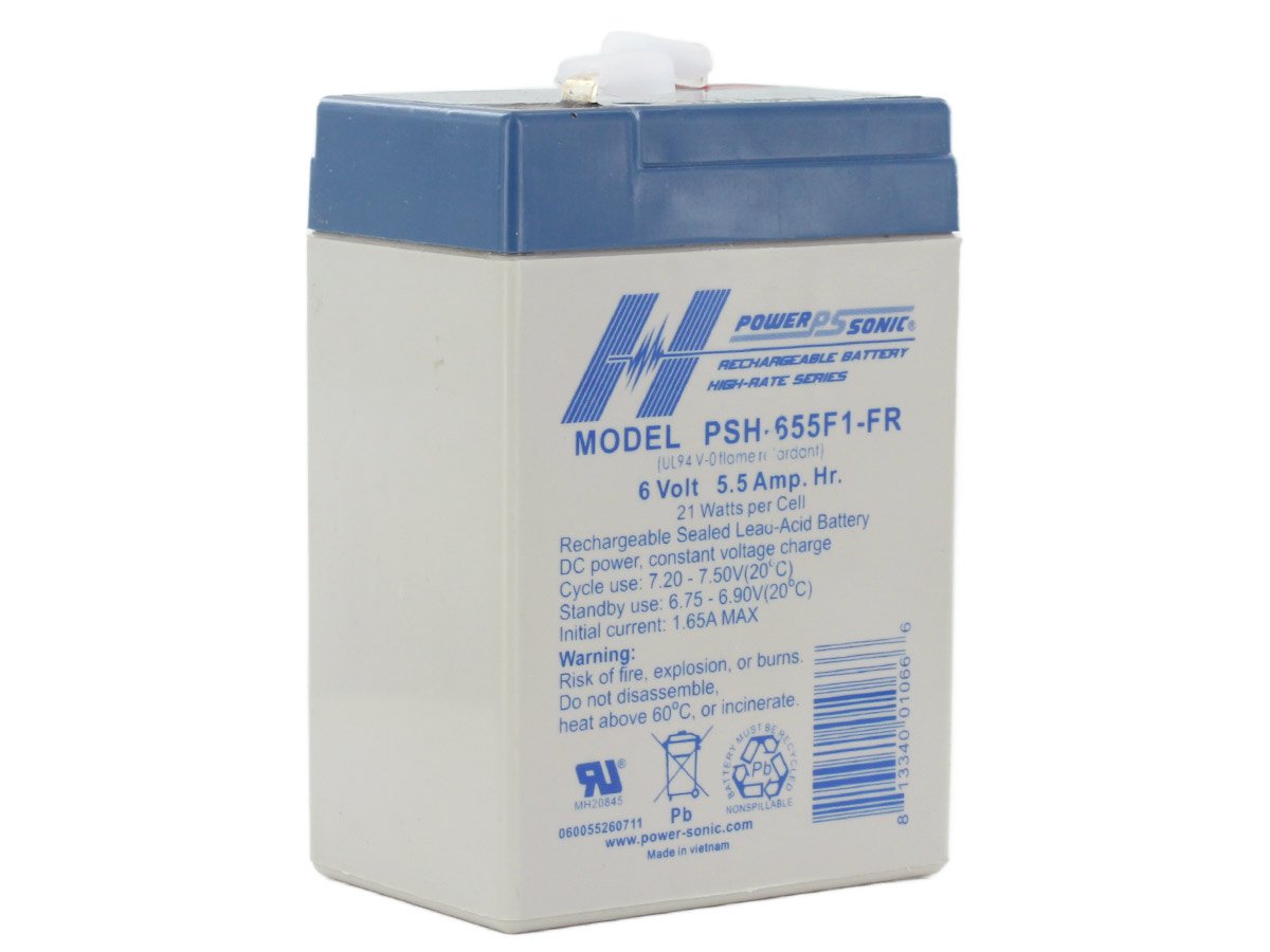 Power-Sonic AGM High Rate General Purpose PSH-655 5.5Ah 6V Rechargeable Sealed Lead Acid (SLA) Battery - F1 Terminal