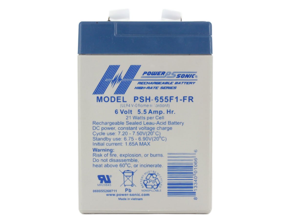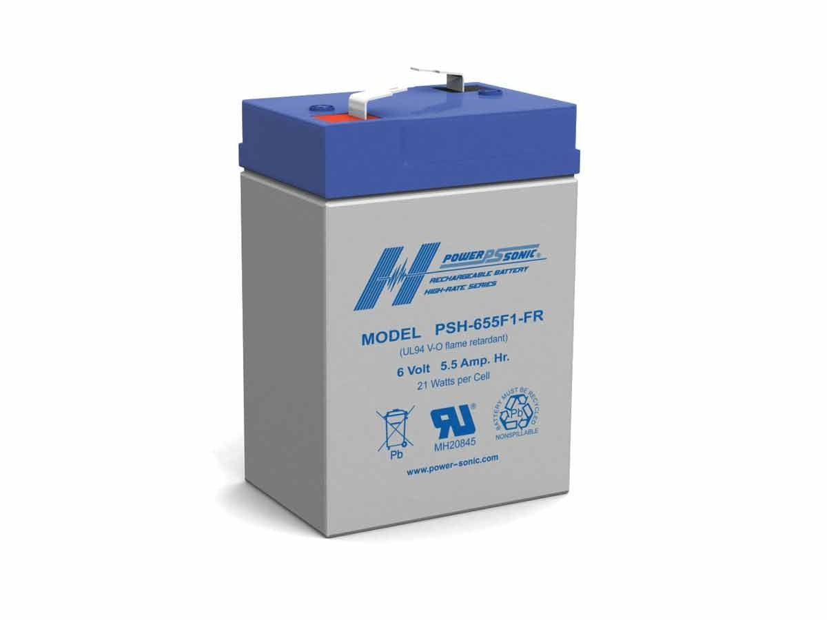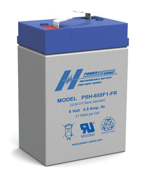 The Power-Sonic PSH-655 FR battery is specifically designed for high-rate discharge (UPS) applications. It features an Absorbent Glass Mat (AGM) technology that provides you with superior performance you can count on. It can be operated in any position and used in close proximity to people and sensitive equipment. The Power-Sonic PSH-655 FR battery is the smart choice since it is easy to handle, maintenance free, rugged and economical.