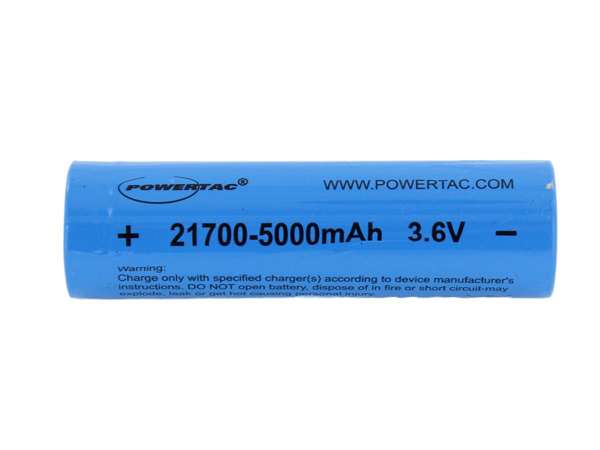 Keep your favorite Powertac flashlights shining their brightest with this 21700 Li-ion Rechargeable Battery! With a whopping 5000mAh capacity, this battery can handle long runtimes and help deliver optimal performance. Thanks to its Li-ion chemistry, this battery keeps a high energy density with a low weight, making it a perfect fit for your favorite Powertac flashlights. Recharge this 21700 up to 500 times to save time and money on replacements!
