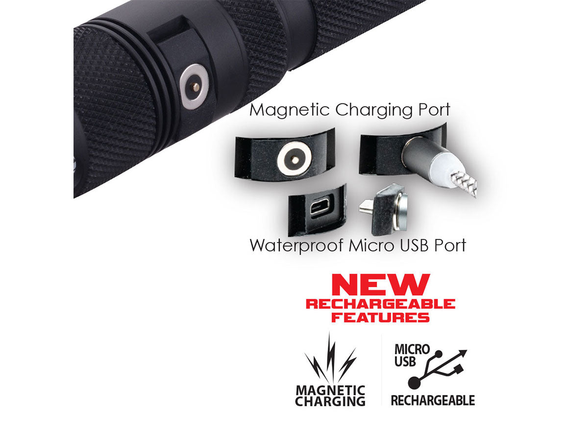 The E9R-G4 features the new Powertac magnetic charge port and its benefits. This new port combines the user-friendly magnetic terminal for attachment in a snap, but also contains the capability of accepting micro USB cables. The micro USB port is concealed behind the magnetic hub and port for easy access. That way, if you forget one charging cable, you won't be left without your light.