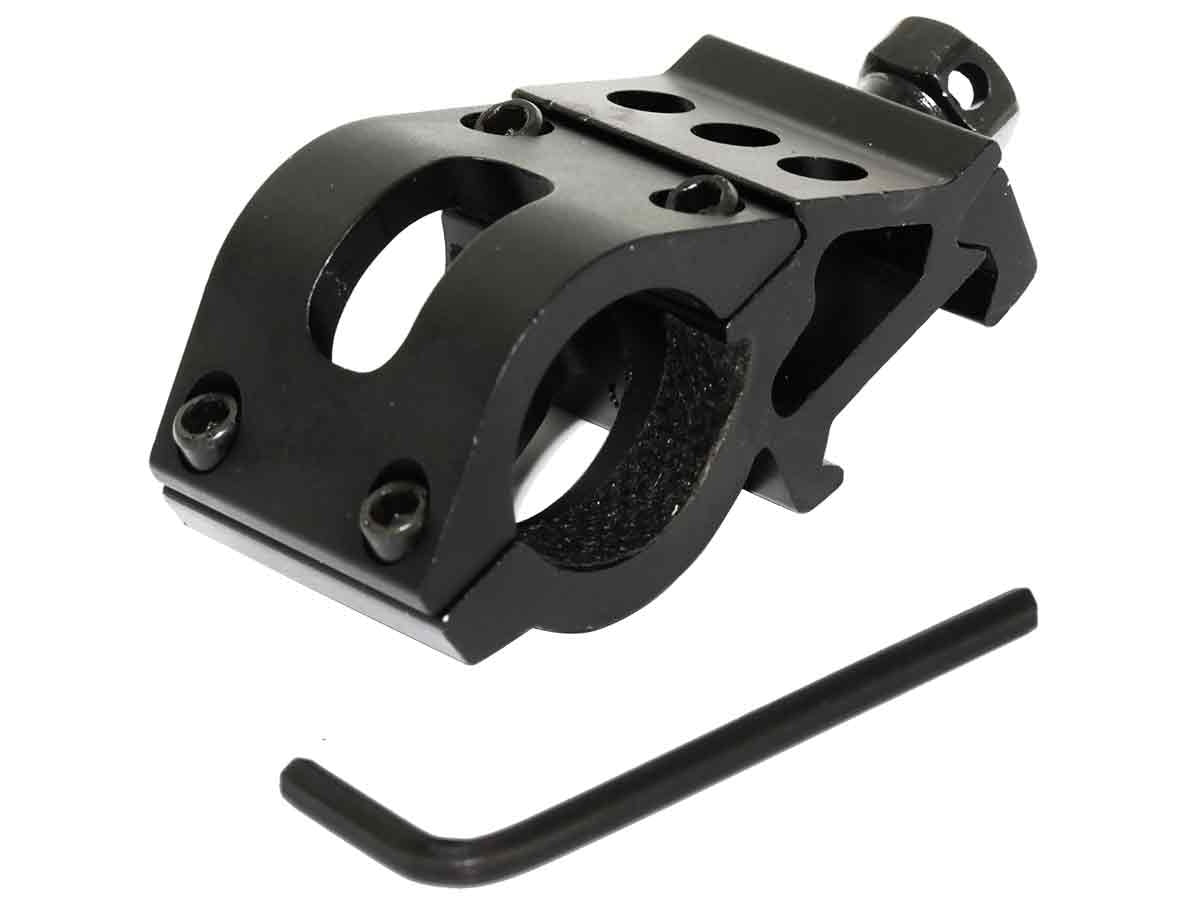 - Accepts flashlights and red dot sights with 1 inch main tube