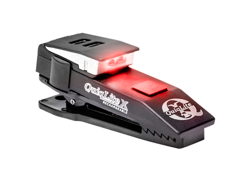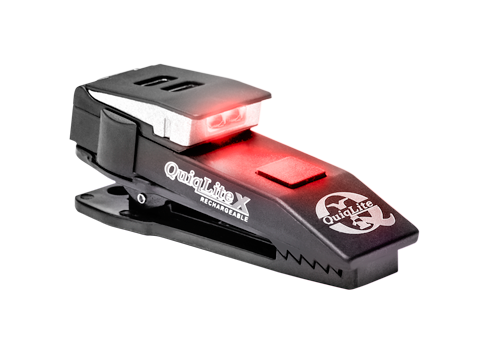 The QuiqLiteX is great for hands-free applications and provides substantial illumination. Like the QuiqLitePro, this rechargeable QuiqLiteX has 1 x Red LED and 1 x White LED for dual-purpose lighting. Blast out 75 lumens instantly hands-free!Features: