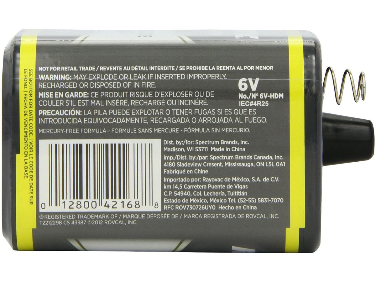 The Rayovac 6 Volt Heavy Duty Maximum Lantern Battery has a reputation for its durability, long-lasting power and great value. These batteries are ideal for powering high-drain devices and built to exceed performance demands of industrial applications. It features a mercury/cadmium free formula and is guaranteed against leakage. The Rayovac 6 Volt Heavy Duty Maximum Lantern Battery has spring terminals, is environmentally safe and meets EPA requirements for landfill disposal. Rayovac offers a complete line of Lantern batteries for long-lasting life and reliability.