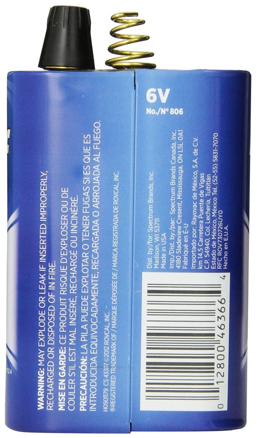 Rayovac 806 D Cell 6V Alkaline Lantern Battery with Spring Terminals - Shrink Pack