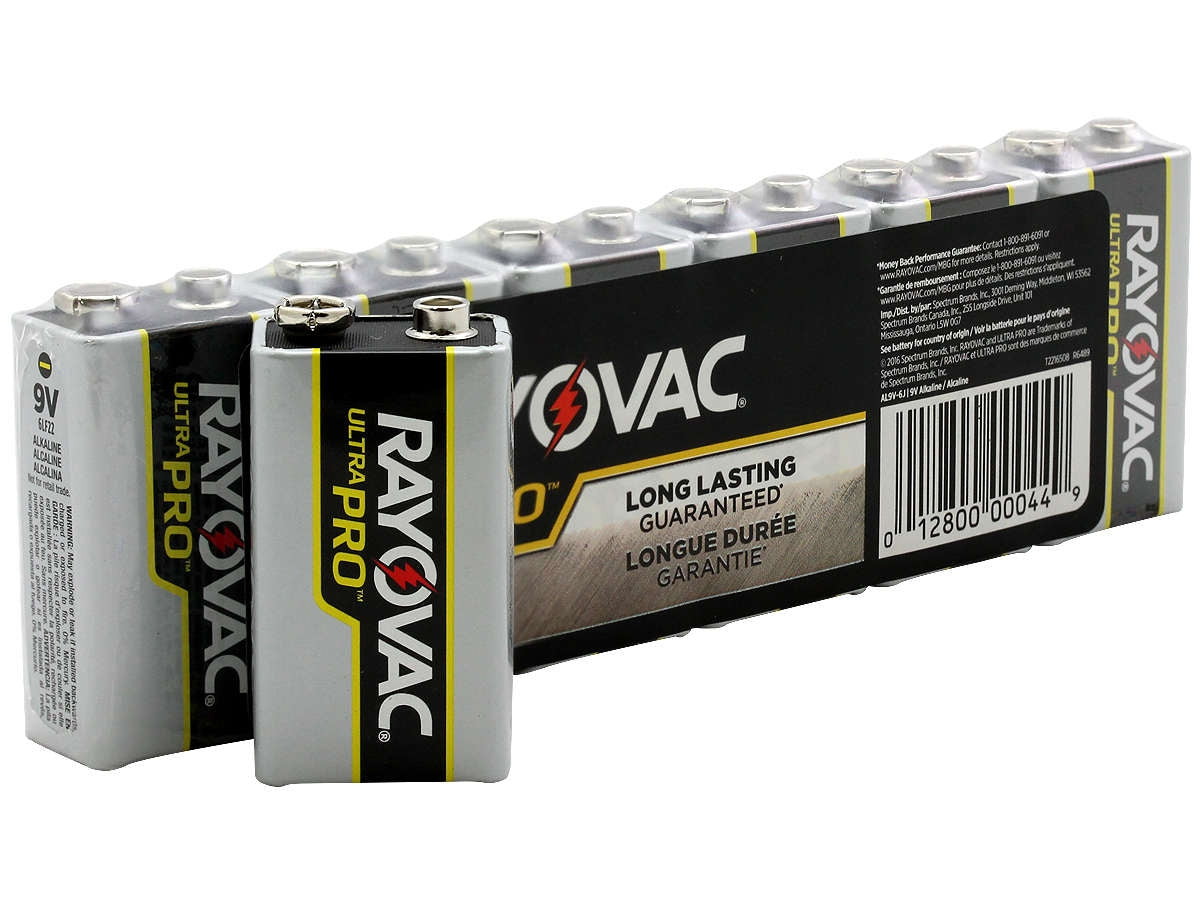 Keep your batteries in line with these shrink-wrapped packs of Rayovac Ultra Pro 9V Alkaline Batteries! These powerful cells make excellent power sources for a wide variety of household devices including smoke alarms, security systems, radios, and much more! These 9V batteries are packaged in handy shrink-wraps of six for easy storage and can be snapped off one at a time when you need them so there's no need to have an abundance of loose cells in your junk drawer. The batteries come with a lengthy 5 year shelf life so you can keep them stored around the house or at your workplace for when you need them most!