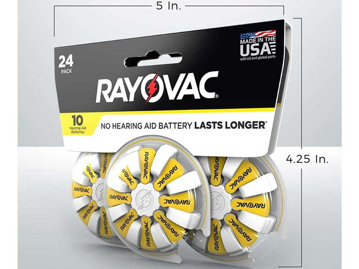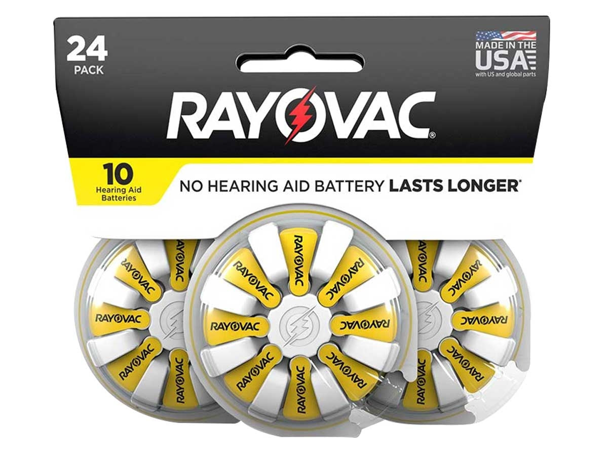 Rayovac 10-24 (24PK) Size 10 75mAh 1.45V Zinc Air Yellow Hearing Aid Batteries - 24 Piece Retail Card