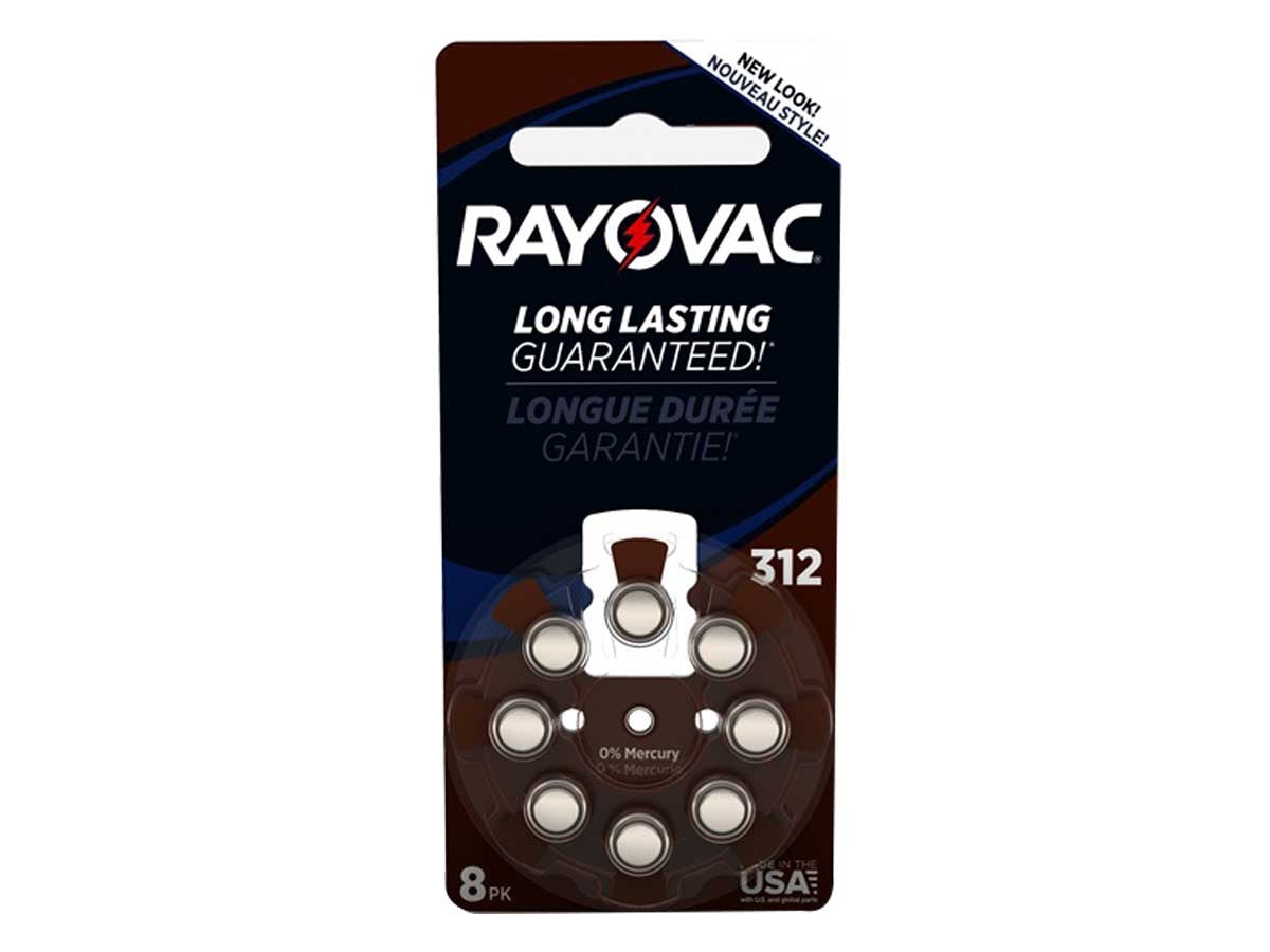 Rayovac 312-8 (8PK) Size 312 180mAh 1.45V Zinc Air Brown Hearing Aid Batteries - 8 Piece Retail Card
