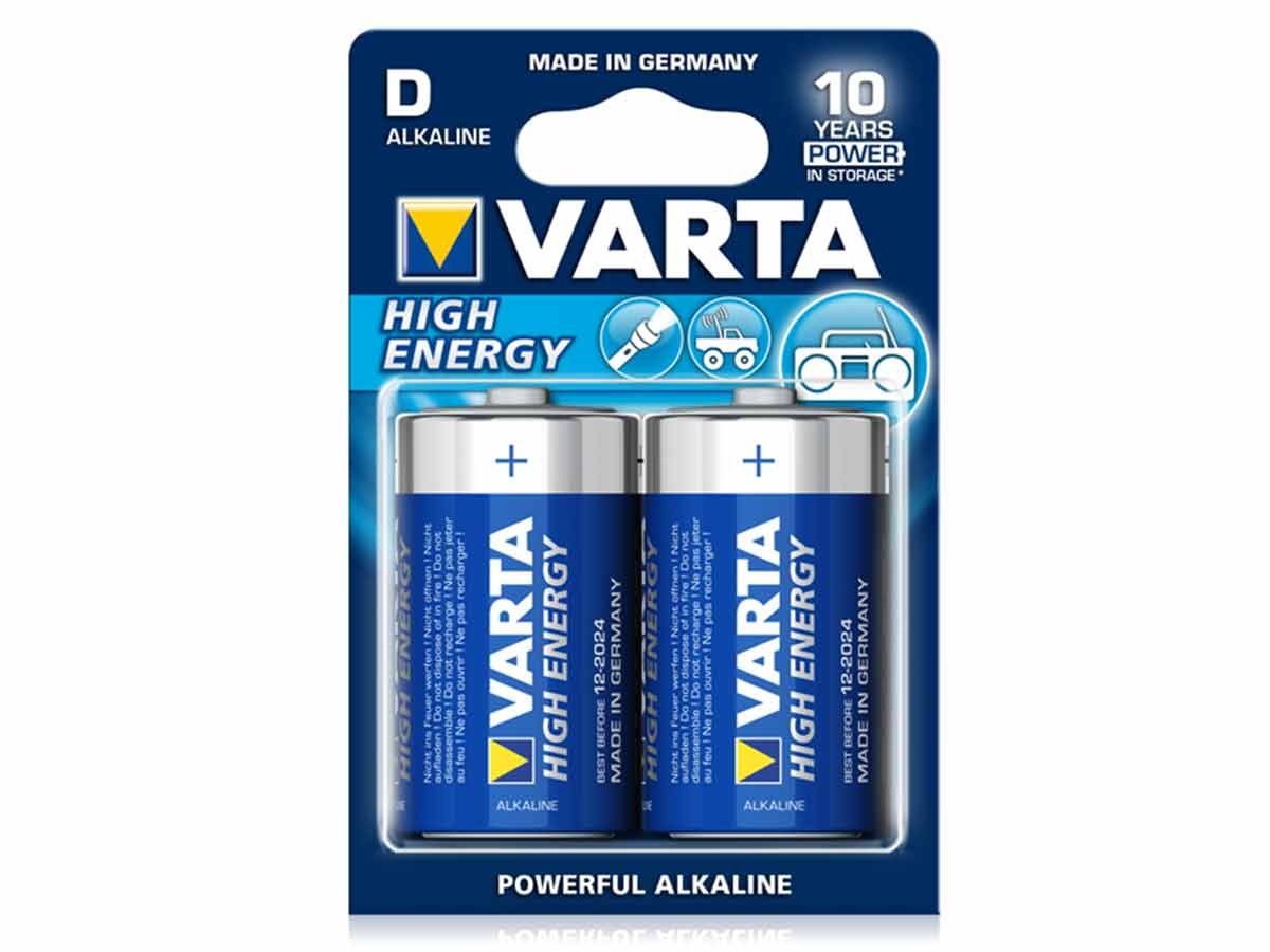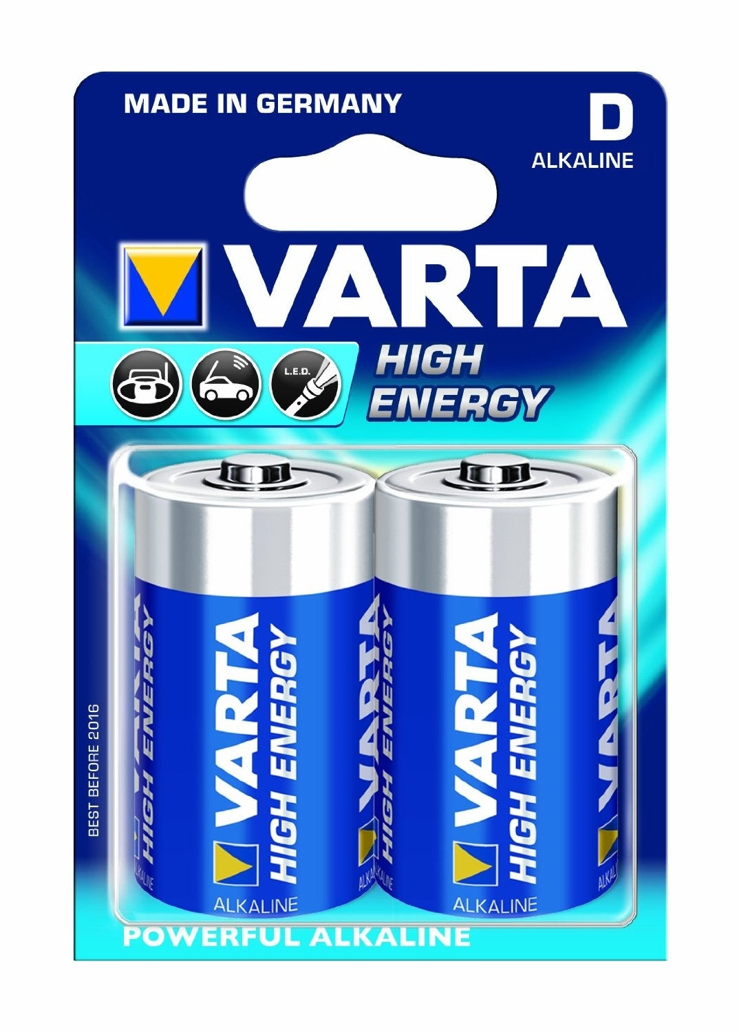 The Varta High Energy D Cell Alkaline Batteries are perfect for devices such as smoke alarms, toys, game systems and much more. It is both a long-lasting and reliable power source that you can count on to fuel your devices. A new Triple Energy Fusion Formula gives each battery 10% more energy. The Varta High Energy D Cell Alkaline Batteries provide you with maximum power and continuous energy, keeping your applications running for longer periods of time. Use Varta batteries to deliver the right energy for almost every need and for almost every device.