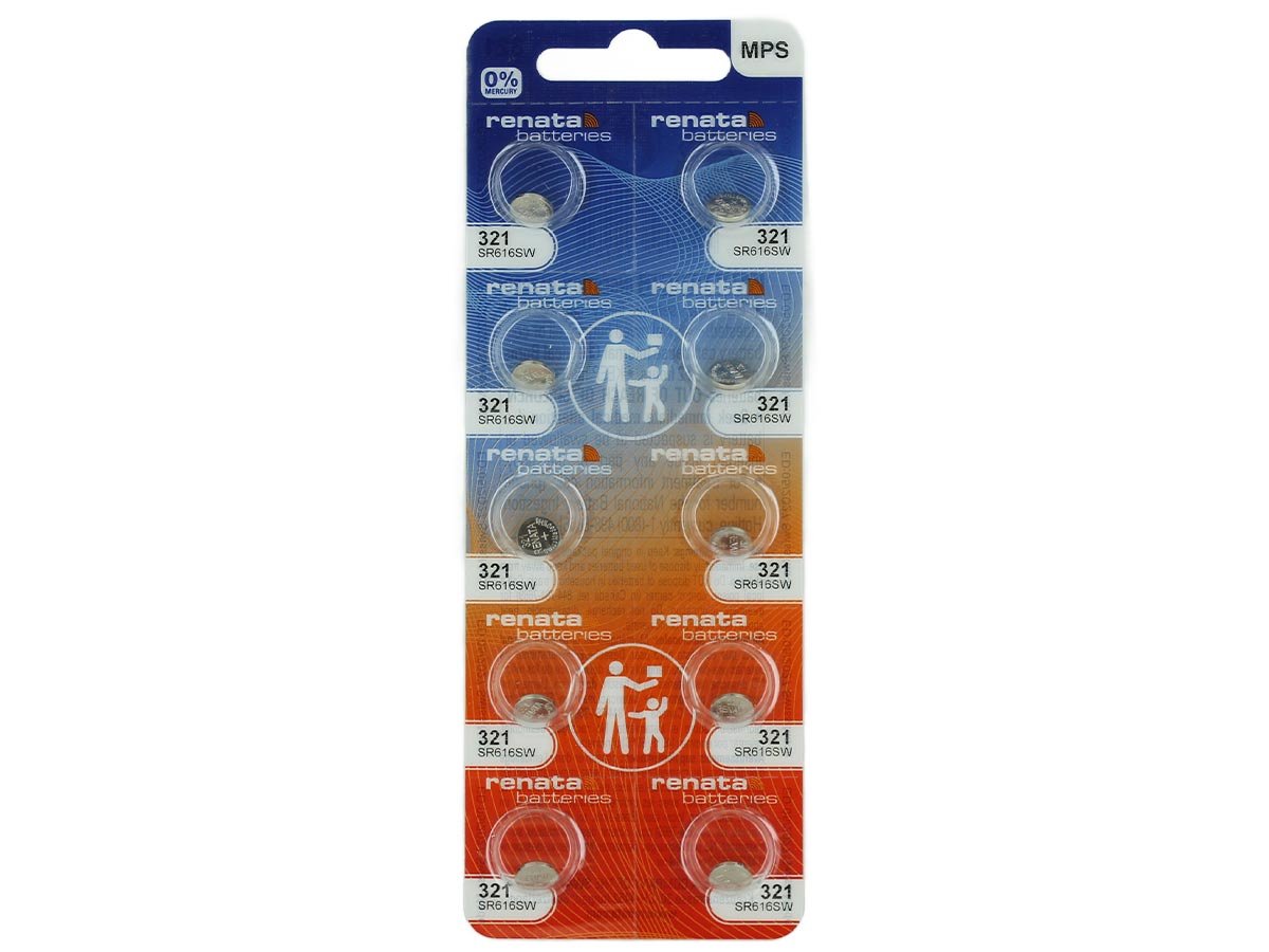 Keep your watches and handheld devices performing at their best with the Renata 321 MPS! The silver oxide chemistry provides a 15mAh capacity so your watch can run for years. This chemisty also provides efficient power retention so that you can store spares for as long as you need. With voltage clocking in at 1.55V, users have reliable power delivery for all their compatible devices, ensuring stable performance. The mercury free design further ensures the safety of your battery and the device it's installed in, even during extended use.