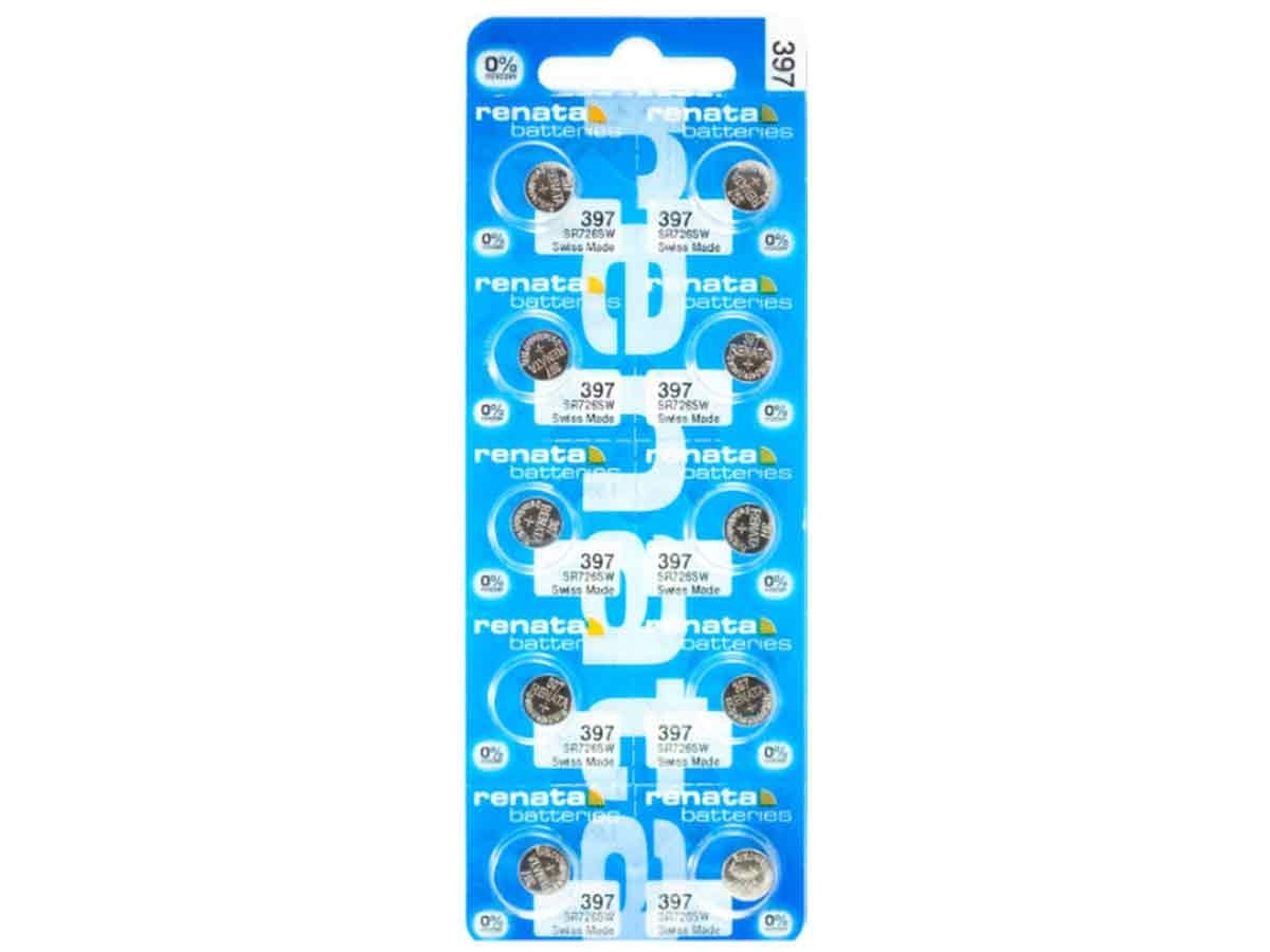 The Renata 397 Coin Cell battery is mercury free and has a capacity of 32mAh. Suitable for analog and basic digital watches and hand held devices that have extra functions. The additional functions require short bursts of power which these batteries are perfect for. Renata is renowned for their button battery cells with a reported failrue rate of less than 1%. Manufacturing high quality batteries with a high capacity retention on storage, Renata continues to provide reliable power sources for many hand held devices.