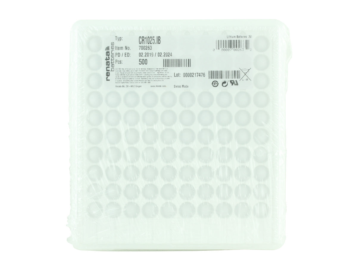 When Renata makes a battery, they do it right. These CR1025 coin cells fit a wide-array of portable devices in the automotive, medical, and consumer electronic industries, and are power-packed with 115mAh of capacity to ensure your devices are powered when you need them most. The lithium (Li-MnO2) chemistry offers a 10 year shelf life, so this tray of 300 won't expire when you and/or your workplace stocks up on replacement cells.