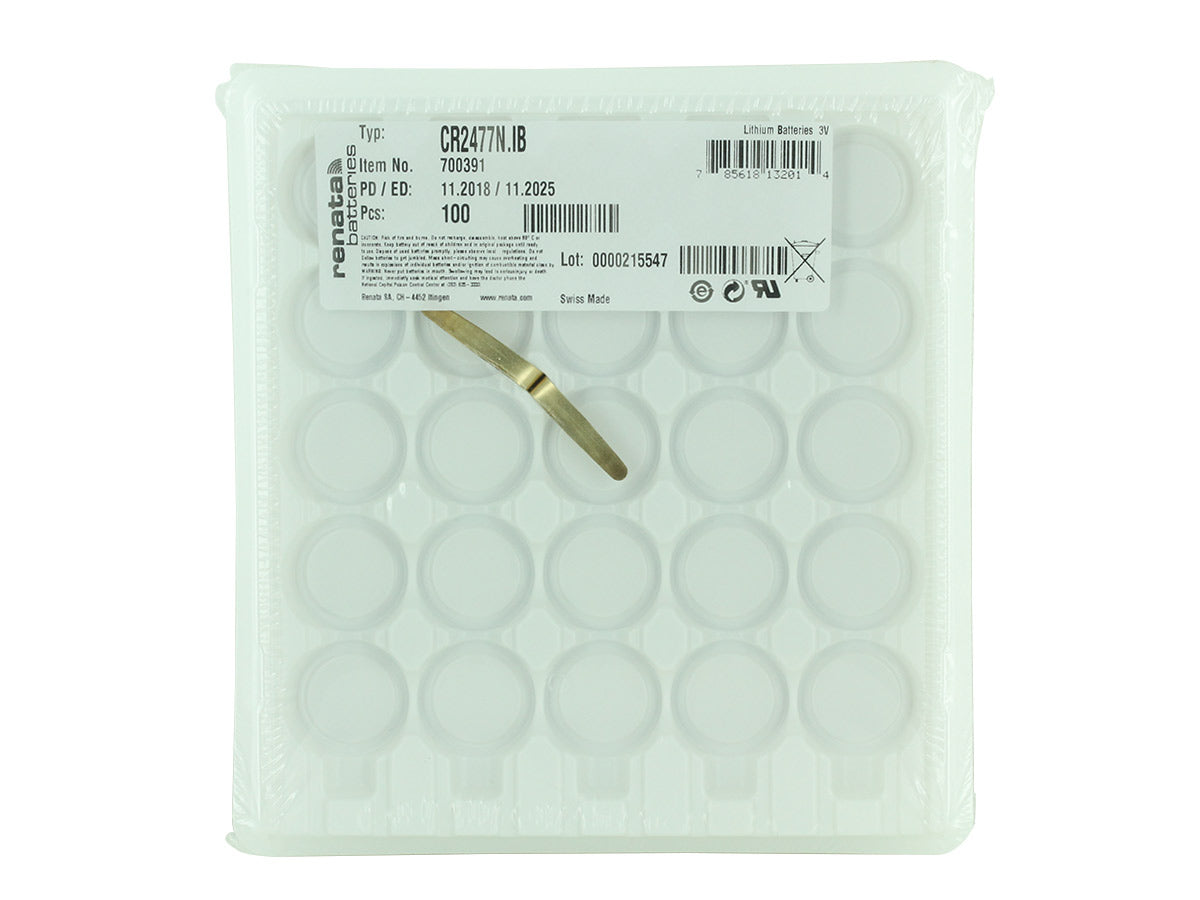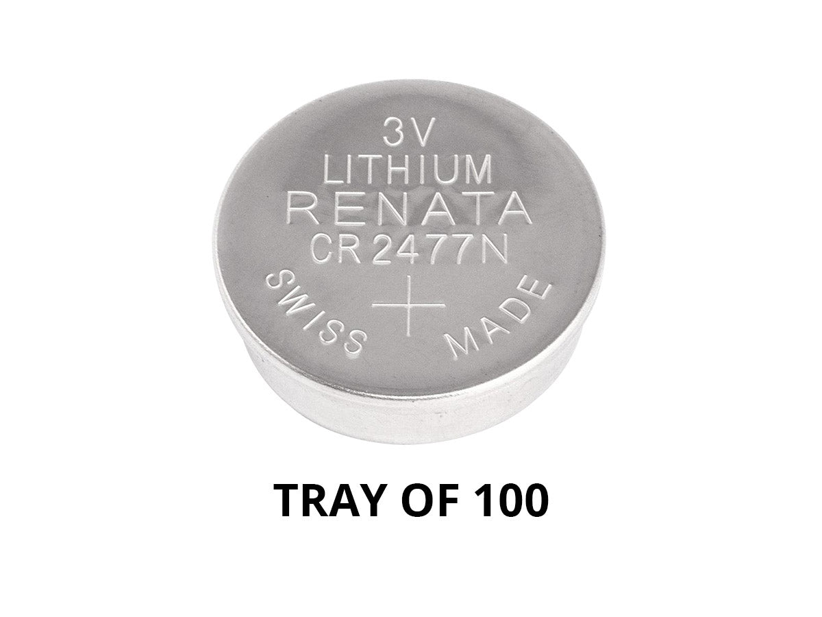 Renata CR2477N coin cells are composed of a Lithium chemistry for long-lasting coin cells that will power small continuous-use devices. With 3 volts of power and a 950mAh capacity, these button cells are prime for different applications, such as powering remotes, hearing aids, thermometers, calculators, and watches. Using only the highest quality materials available, these cells have a distinct reliability that comes in the form of a vast operating temperature range - extreme heat and cold will not slow these batteries down for even a second making them a reliable source of power in any climate.
