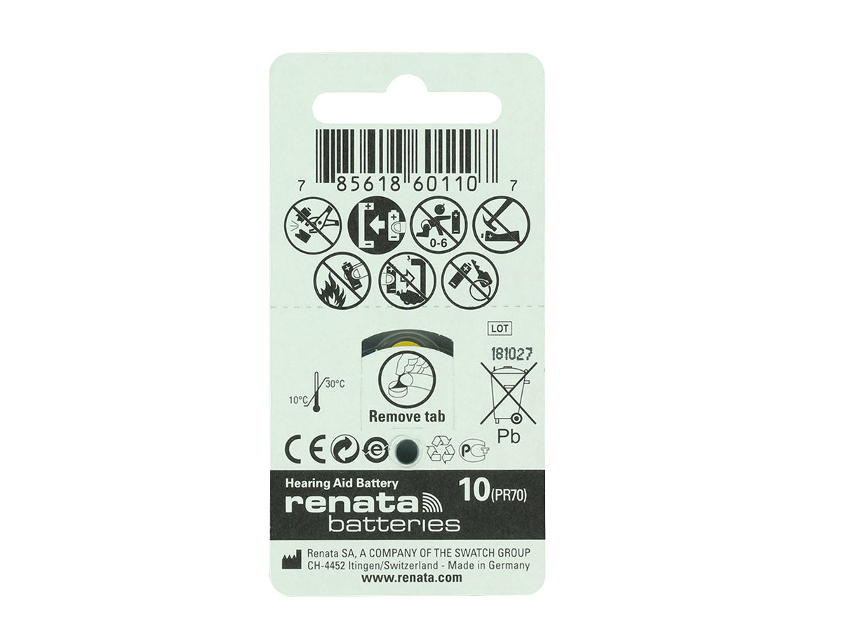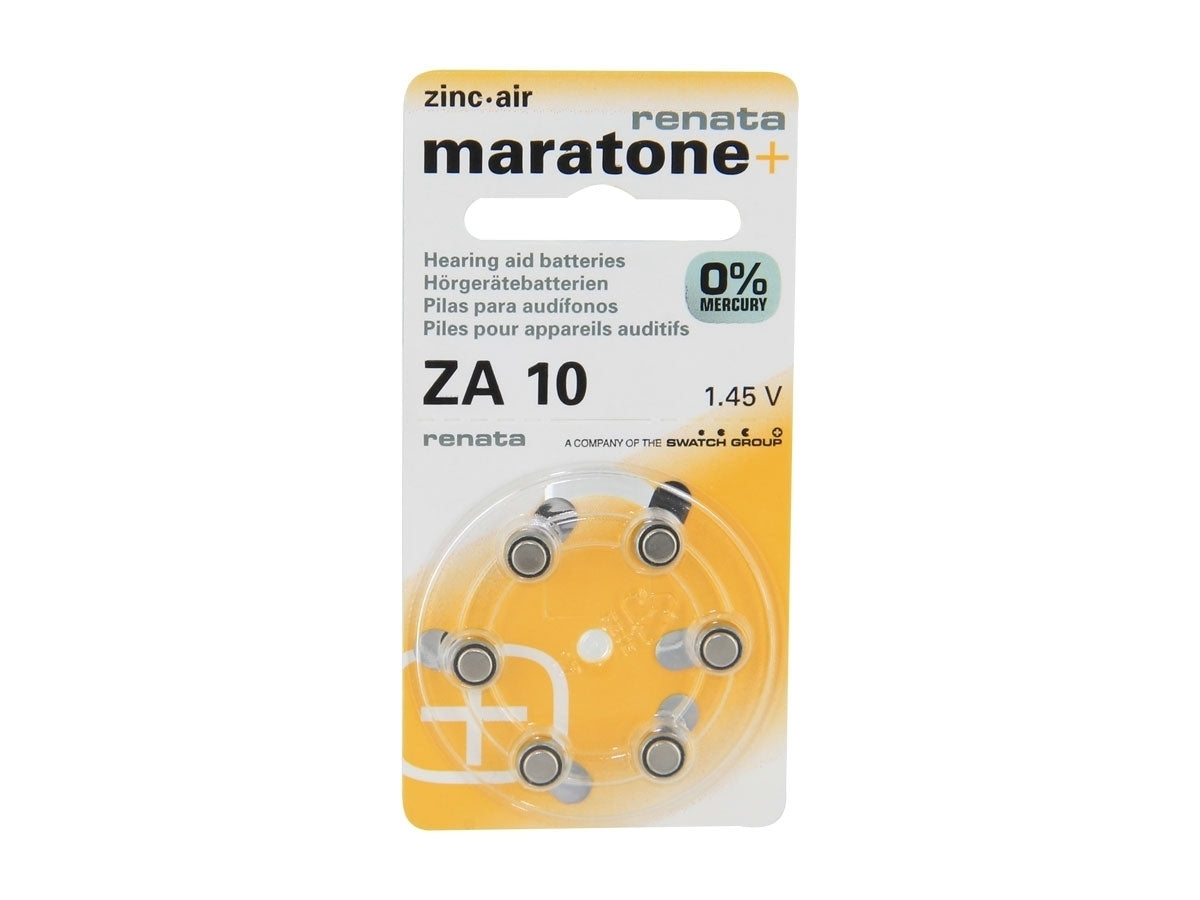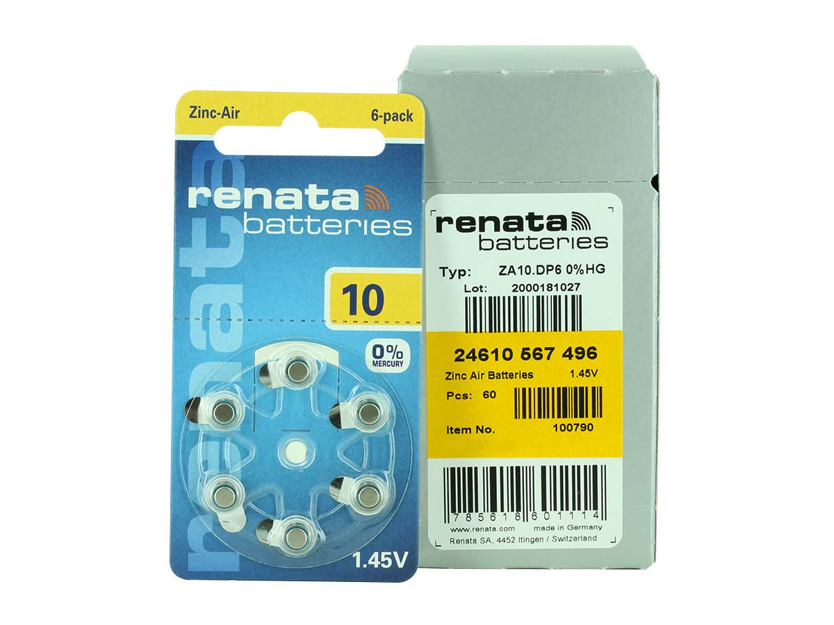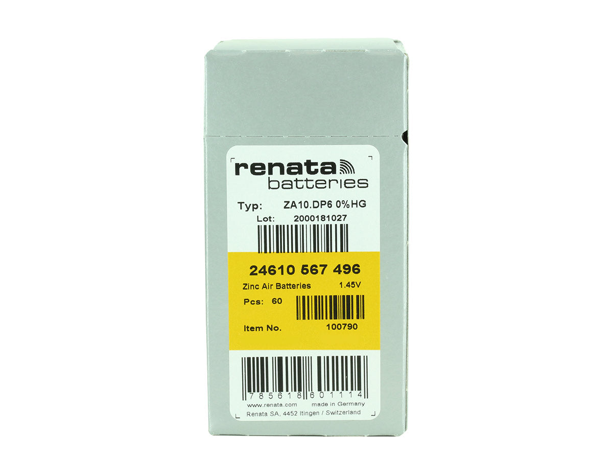 An environmentally safe and reliable option, Renata ZA10 Mercury Free Hearing Aid Batteries are powerful and long lasting hearing aid batteries. These batteries are manufactured with zero mercury, have impeccable run times and are manufactured to high Renata quality standards.