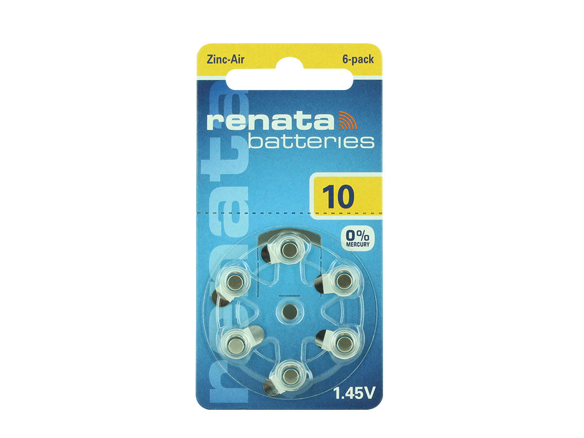 Renata ZA10 Mercury Free Hearing Aid Batteries- 6 Pack