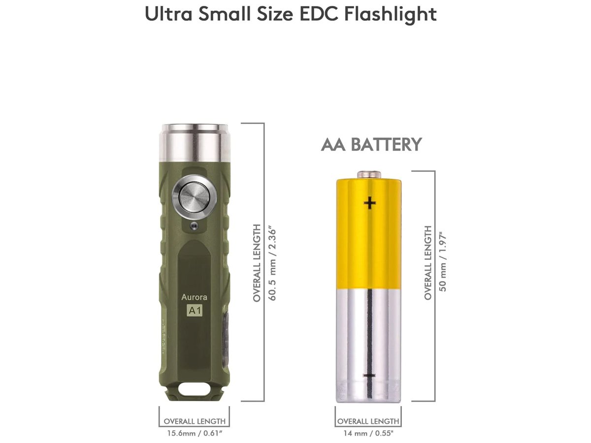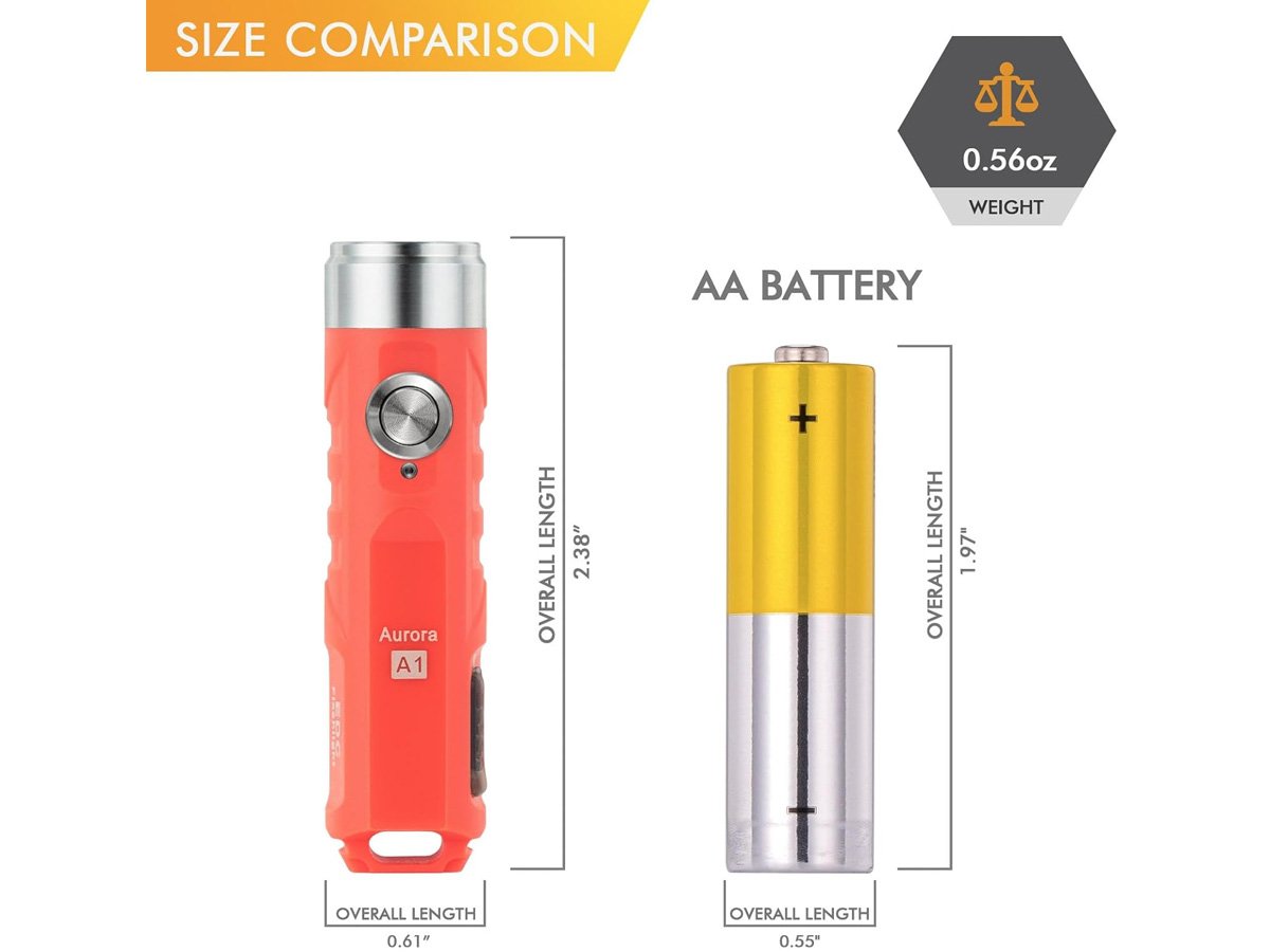 RovyVon A1 Gen 4 USB-C Rechargeable LED Keychain Flashlight -Luminus SST-20 or High CRI LED- 650 Lumens or 420 Lumens - Uses Built-in Li-ion Battery Pack - Black, Gray, Orange, or Army Green