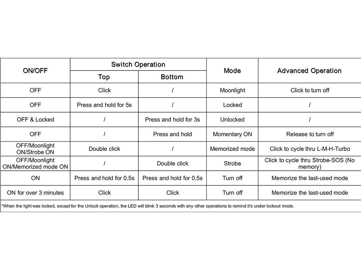 Thanks to the two-button side switch design, you can cycle through brightness modes or have momentary access to turbo or emergency output with a quick press. Strobe and SOS outputs are available for emergency protection assistance or signaling capability, so whether walking to your car at night or traversing hiking trails, this light has your back.