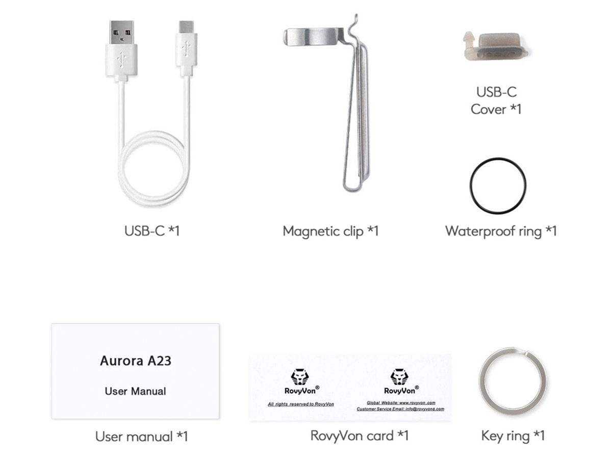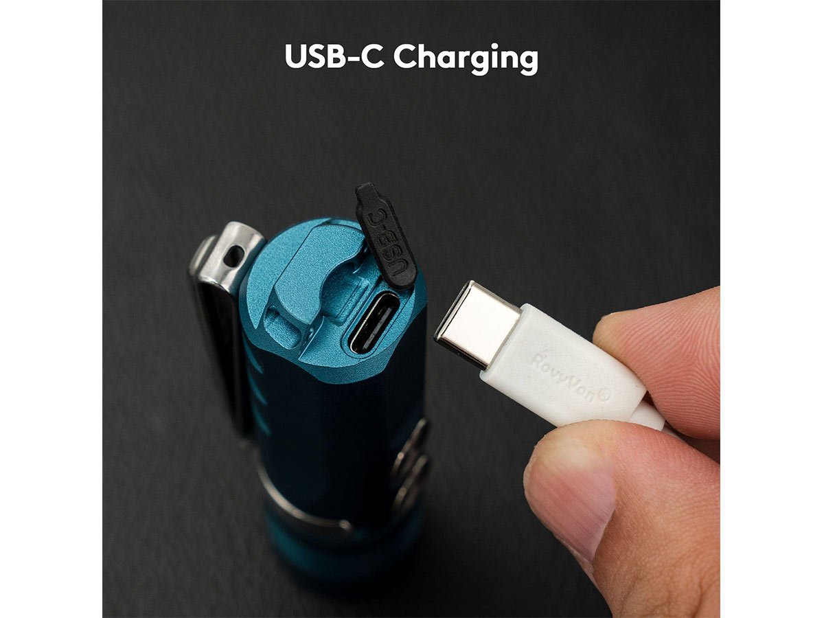 RovyVon A23 Gen 2 USB-C Rechargeable LED Flashlight - 1000 Lumens or 700 Lumens - Uses 850mAh Li-ion Battery Pack - Black or Aqua Blue - Cool White or High CRI