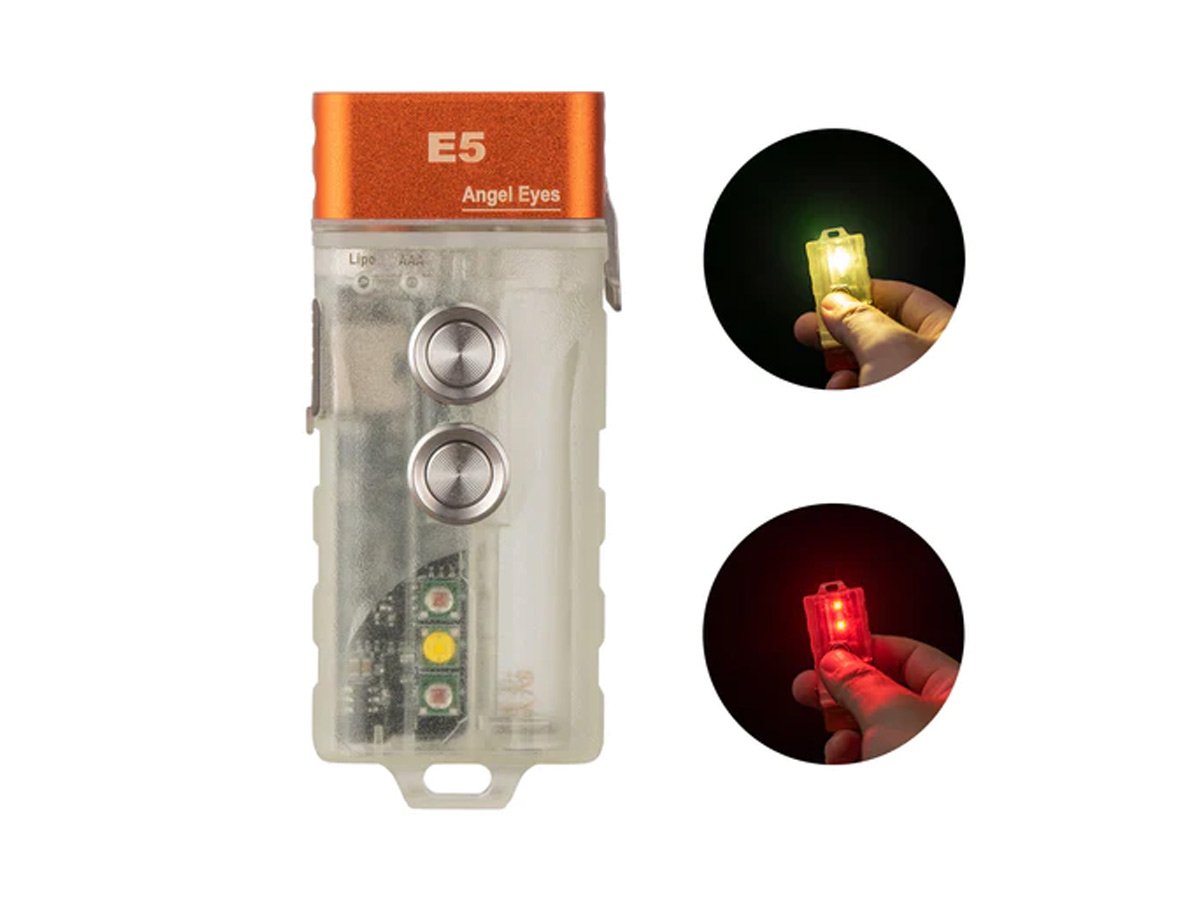 RovyVon Aurora E5 GITD USB-C Rechargeable LED Keychain Flashlight - 700 Lumens or 500 Lumens - Luminus SST-20 - Warm White or Cool White - White and UV or White and Red- Uses Built-in 330mAh Li-Poly Battery Pack or 1 x AAA