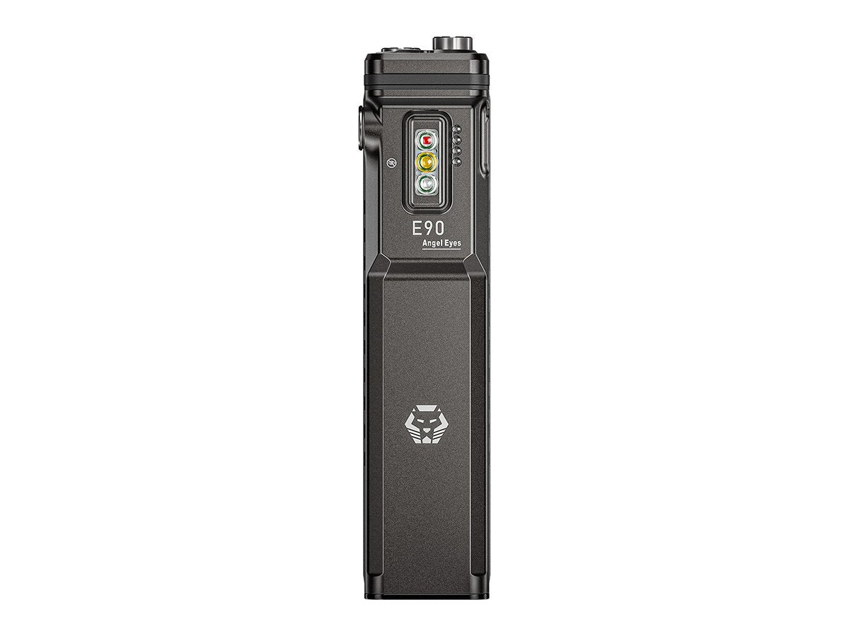 RovyVon Angel Eyes E90 USB-C Rechargeable EDC LED Flashlight - 3500 Lumens - 650nm Red Side Light - 365nm UV Side Light - Uses Built-in 3000mAh Li-ion Battery Pack - Gunmetal