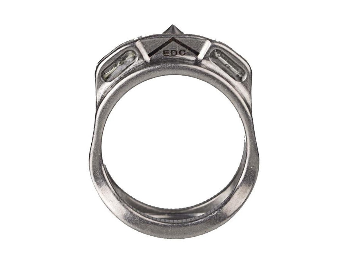 Why settle for an ordinary ring when the Pioneer P1 offers survival and EDC practicality. Made of durable titanium alloy, this ring wont soften, corrode or scratch over time. The embedded tungsten steel bezel easily smashes through glass, and can be used to gain the upper hand in a self-defense situation. At the base of the ring is a hidden bottle opener, a handy tool at any party or event. The included stainless steel chain and titanium skull bead turns the RovyVon P1 into a stylish pendant for safe and accessible storage.