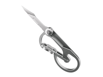 The U4 carabiner knife from RovyVon's Utility series is perfect for on-the-go outdoor adventure and travel EDC. Made of durable titanium alloy with a matte sandblasted finish, this carabiner features an integrated folding knife that can be sharpened or replaced with any #11 scalpel blade.