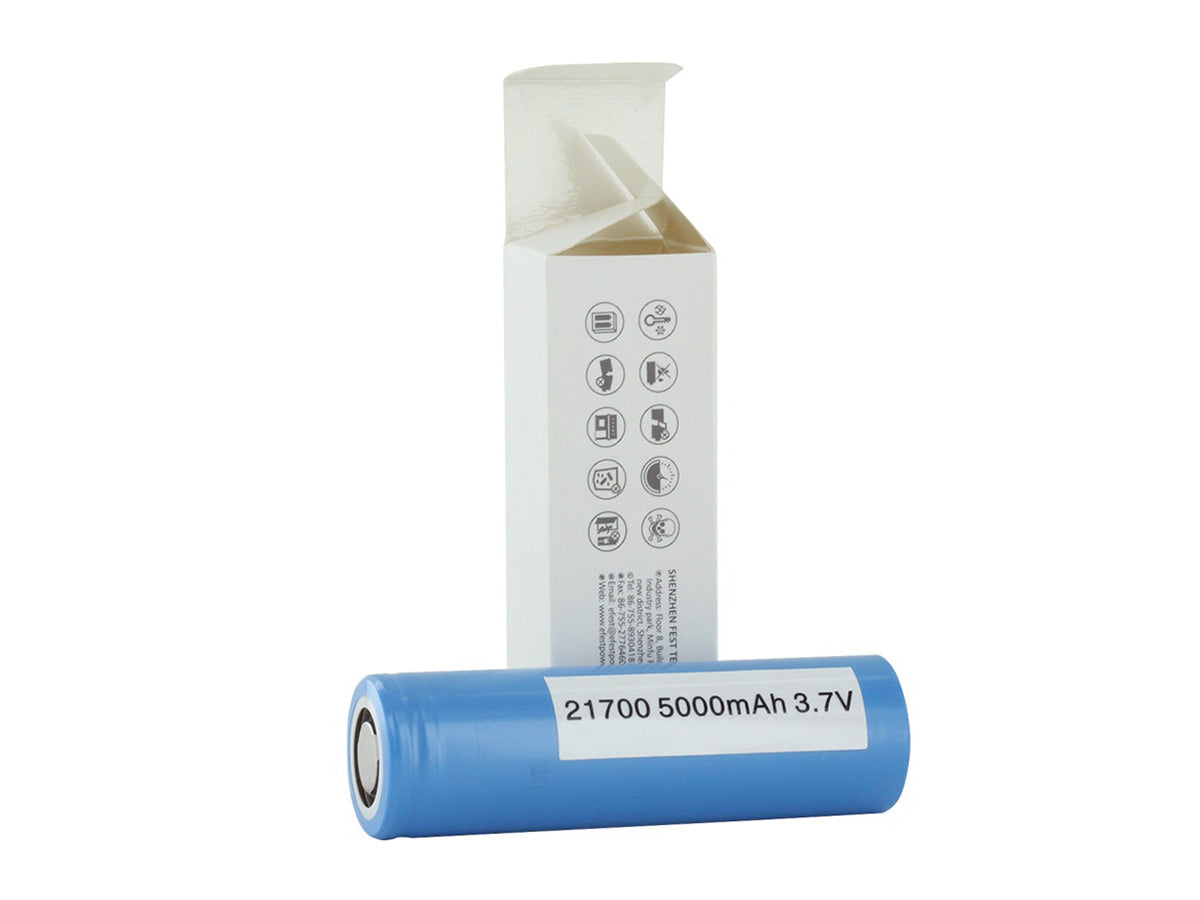 The Samsung 50E li-ion battery is one of the most powerful and reliable cells available in the 21700 size, and boasts a 5,000mAh capacity that's sure to keep your electronic devices running longer. As this battery is unprotected and features flat top terminals, it is recommended for use in battery packs.