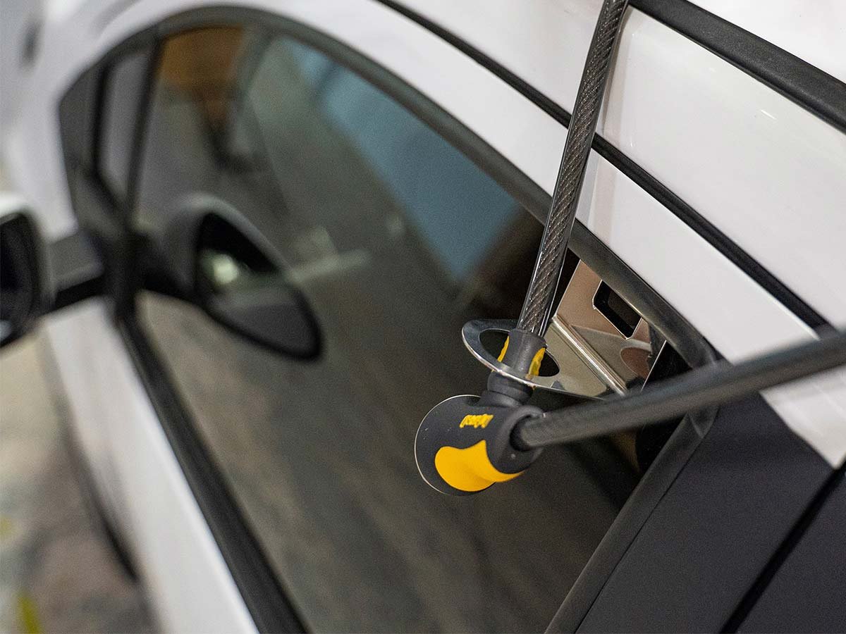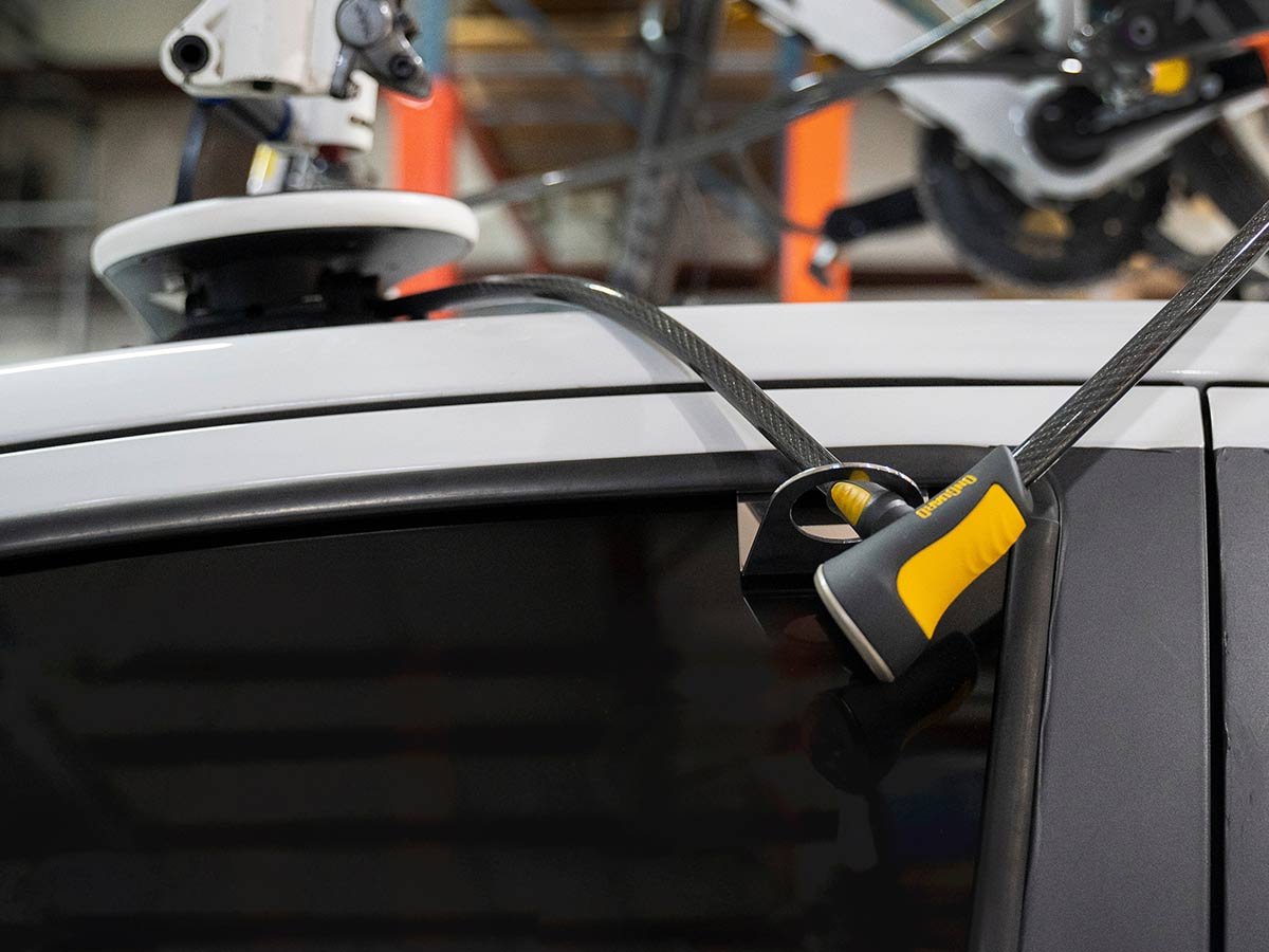 Keep your bike fastened on the go with the ever-so-convenient SeaSucker Window Cable Anchor! This cable anchor slides over your car window glass and fits snugly to the window frame, allowing the glass to secure tightly when rolled up. Connect your cables, wires, and straps through the anchor to lock overhead items in place, such as a bike or kayak.
