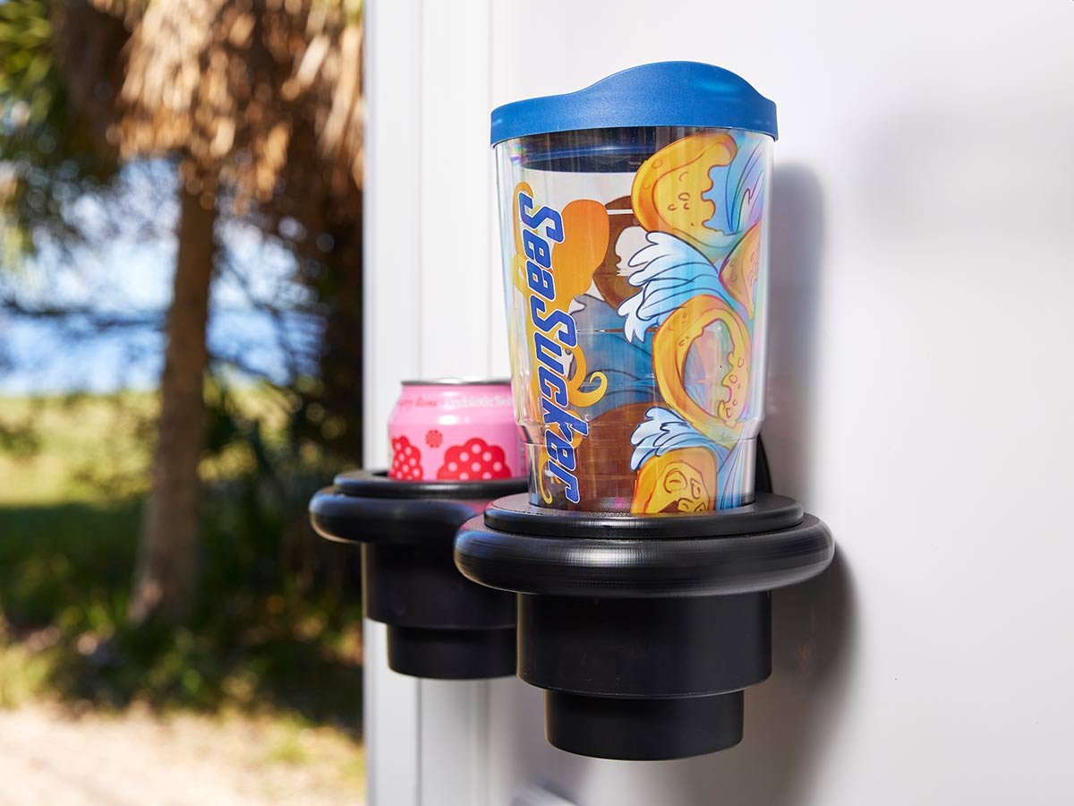 Hate spilling your drink at your campsite? Use the SeaSucker MC5301 2-Cup Holder! With a pull-strength of 120lbs, the MC5301 can hold two drinks without any fear of them dropping or falling. The high-density polyethylene material provides improved durability so that you can use this cup holder anywhere, whether it's out in the woods or on rough waters while boating.