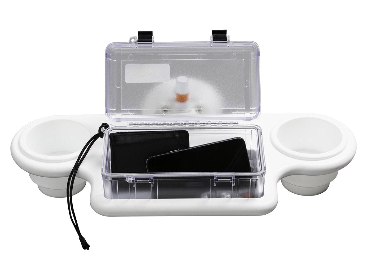 Have fun with extra security using the SeaSucker 2-Cup Holder w/ Large Dry Box! When out on the lake, it may be best to secure your important belongings in a dry box when you want to go swimming. With SeaSuckers's staple vacuum mount attached, your phone, wallet, and keys are kept securely affixed to the boat with a pull-strength rating of 120 pounds! Have a convenient and reliable spot to store drinks as well as your essentials while out at sea.